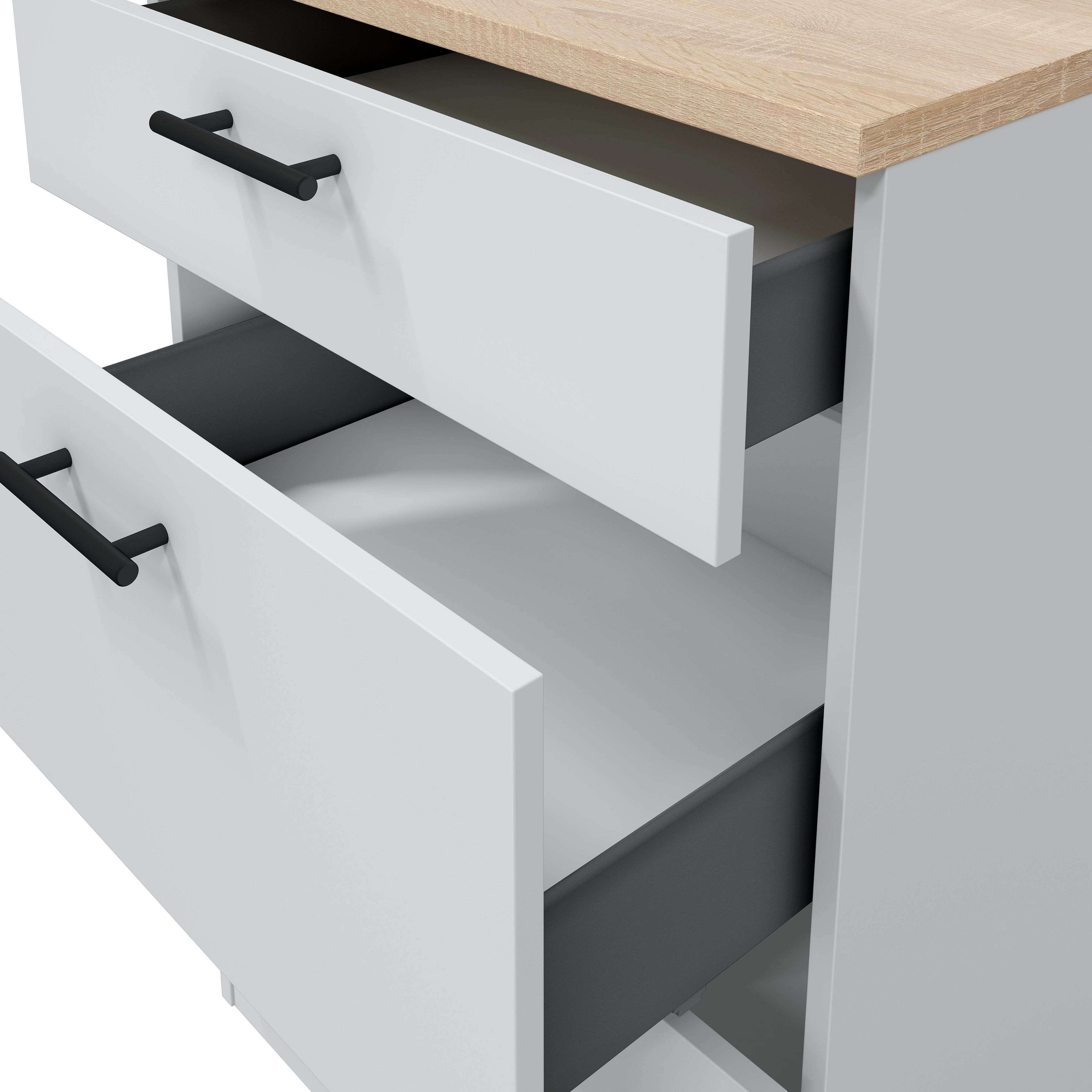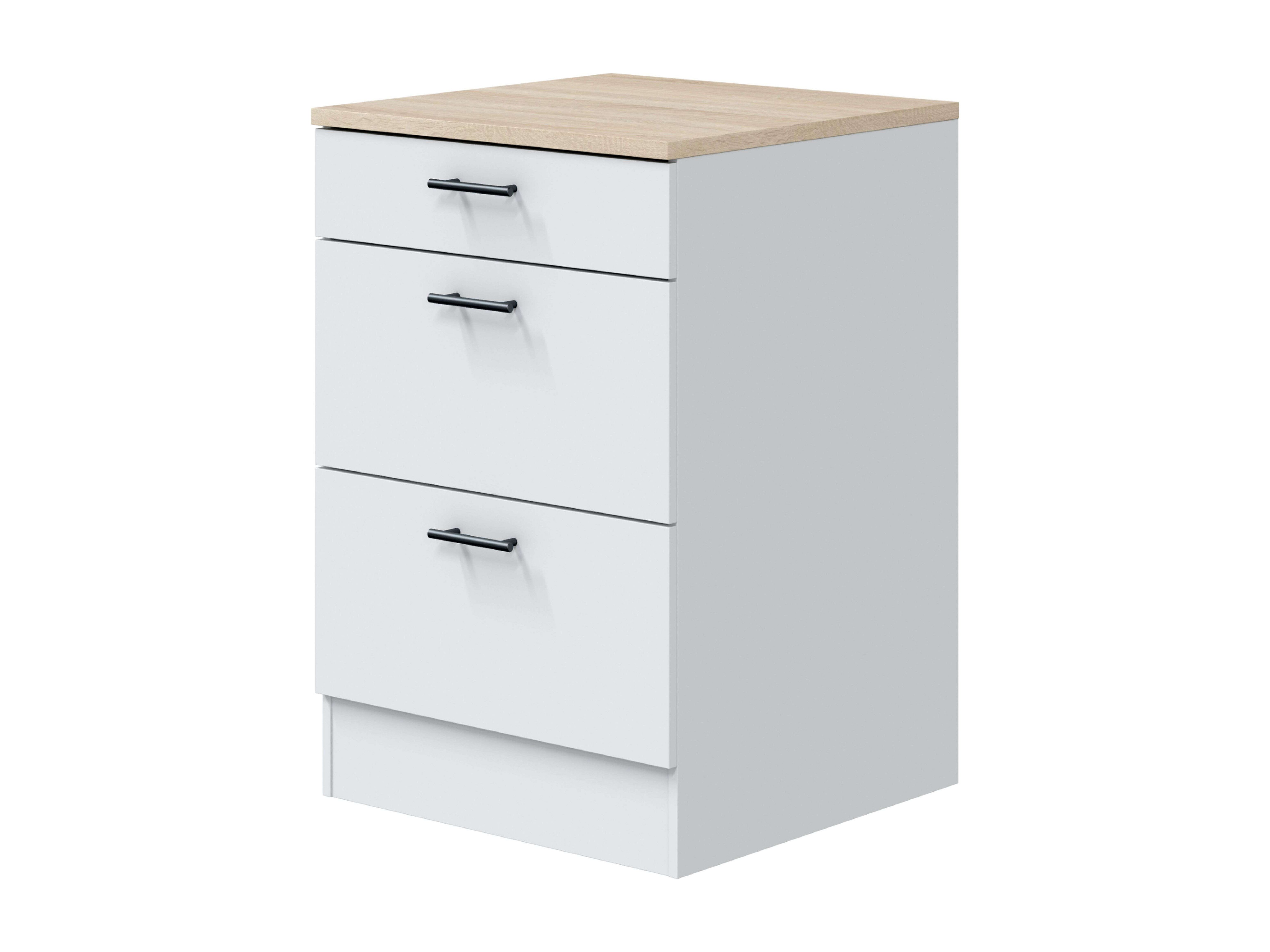 Kira Module Inférieur Cuisine Moderne Blanc Brillant et Chêne 3 Tiroirs 60x90x60 cm