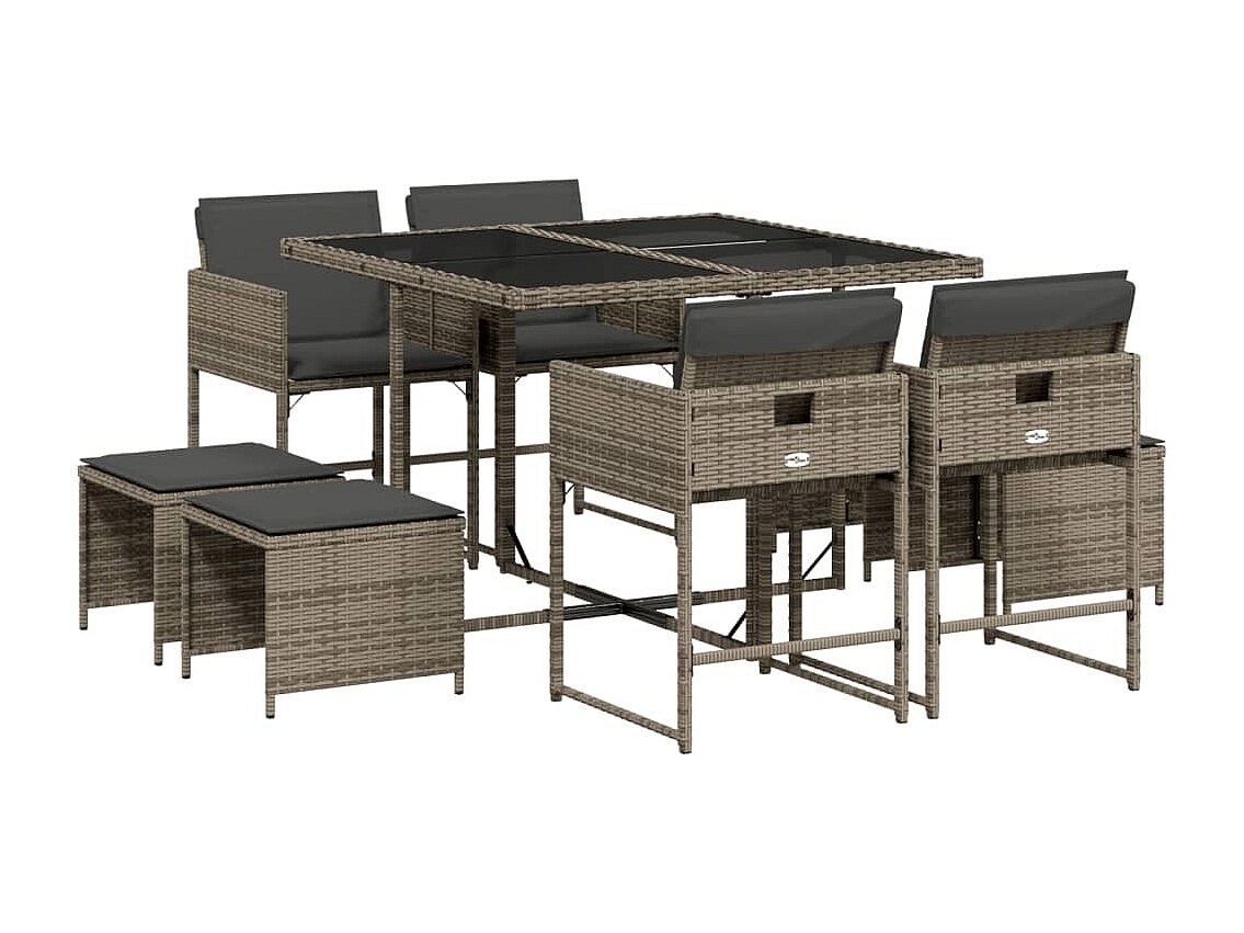 Kirkland Ensemble à manger de jardin 9 pcs coussins gris résine tressée
