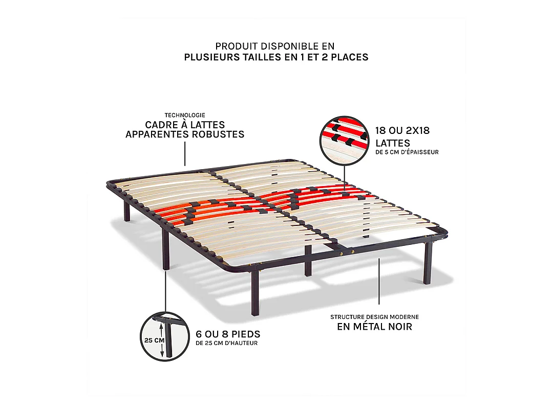 Kit cadre à lattes - 180 x 200 cm - Morphologique Zones de Confort