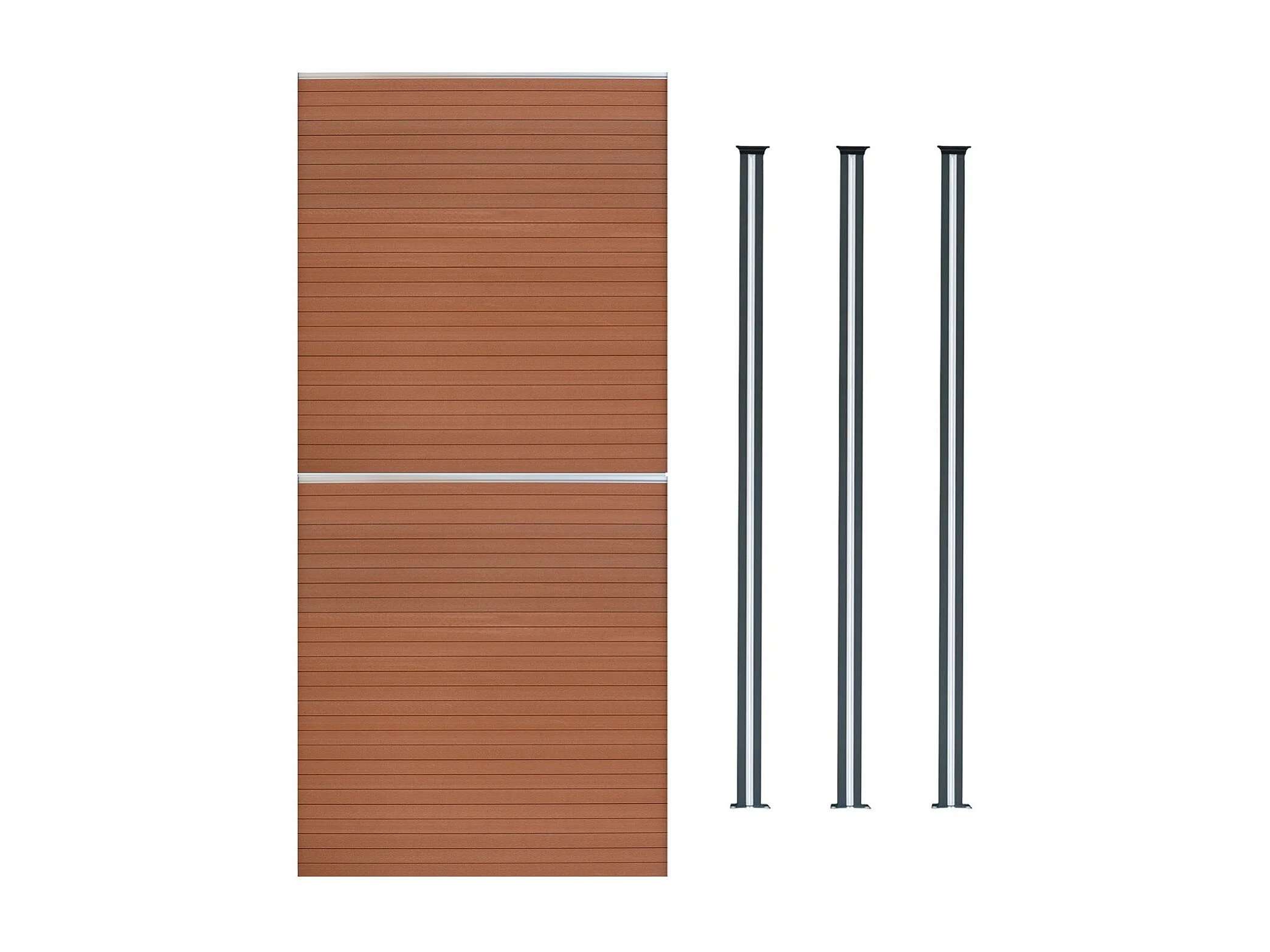 Kit Clôture Composite 2 Panneaux & 3 Poteaux à LED - Marron