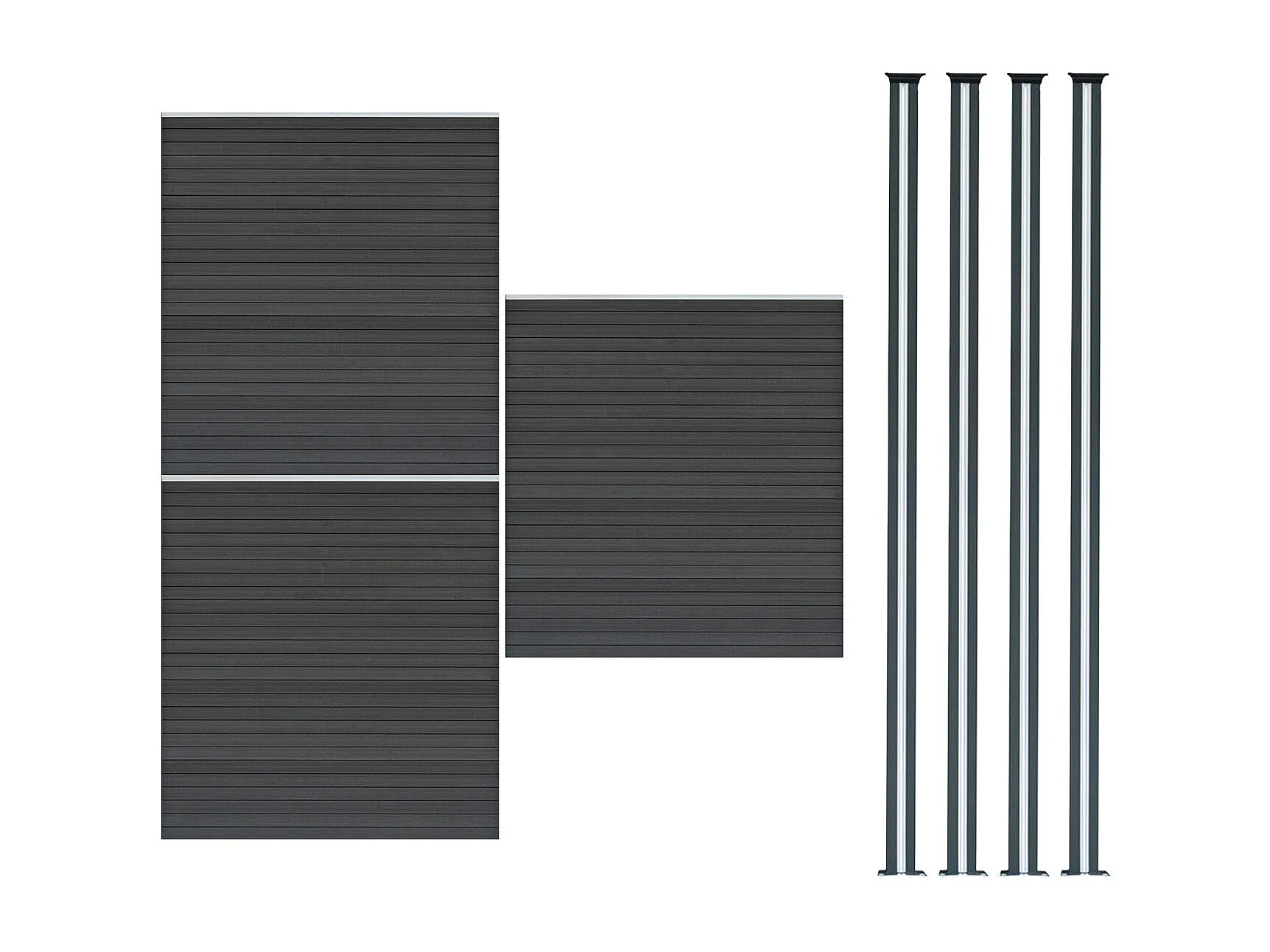 Kit Clôture Composite 3 Panneaux & 4 Poteaux à LED - Gris