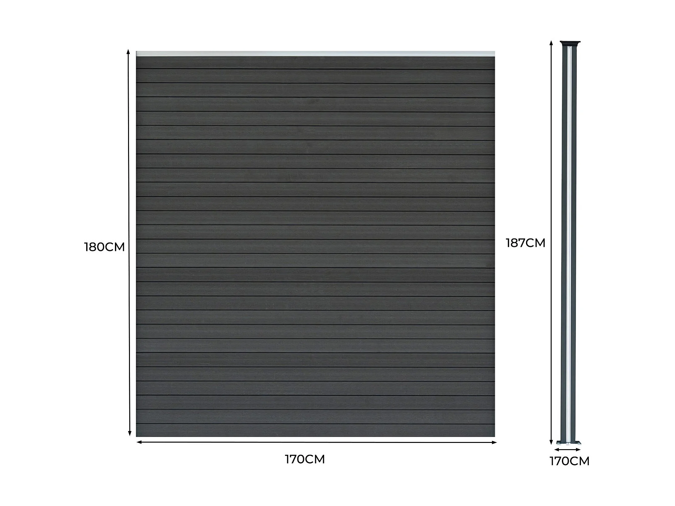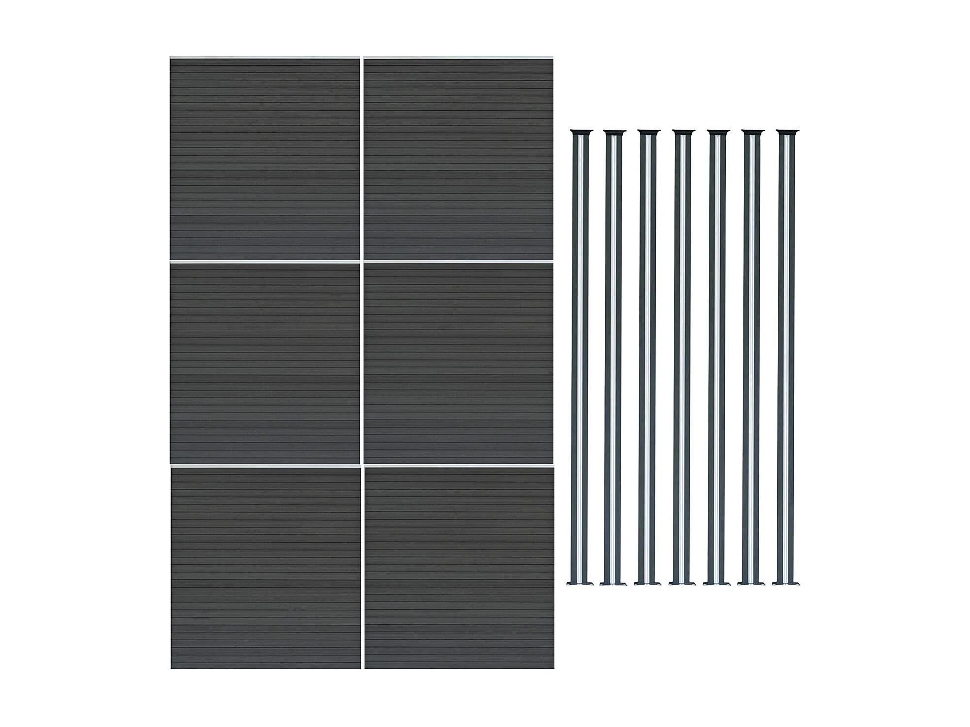 Kit Clôture Composite 6 Panneaux & 7 Poteaux à LED - Gris