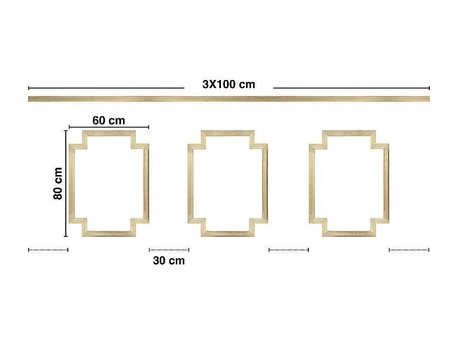 Kit de 3 moulures murales en bois - Pin des Landes - Cimaises, prêtes à coller et peindre - Ambre - 3 mètres - Fabrication française