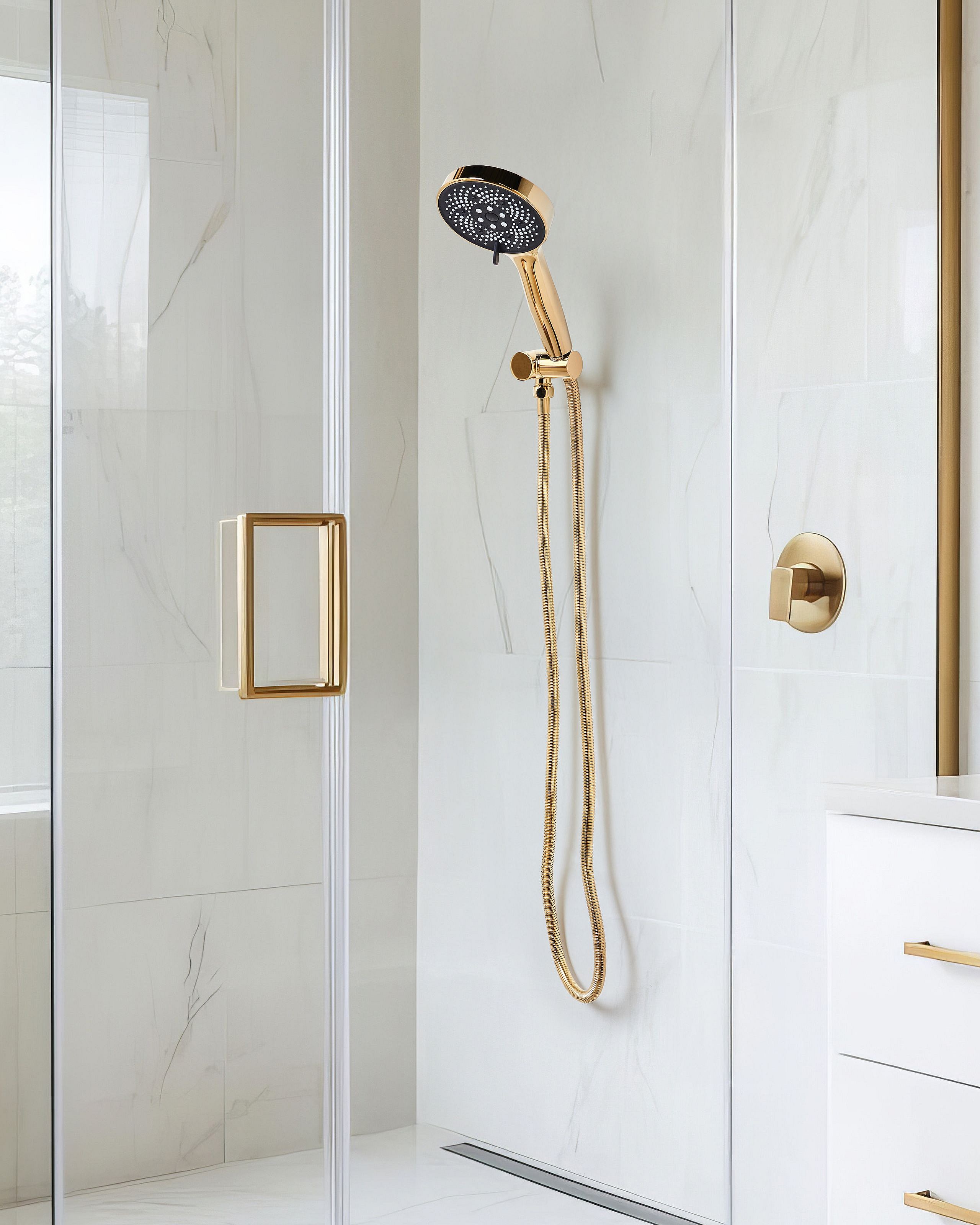 Kit de pommeau de douche avec tuyau flexible TUMPLE 3 modes Doré