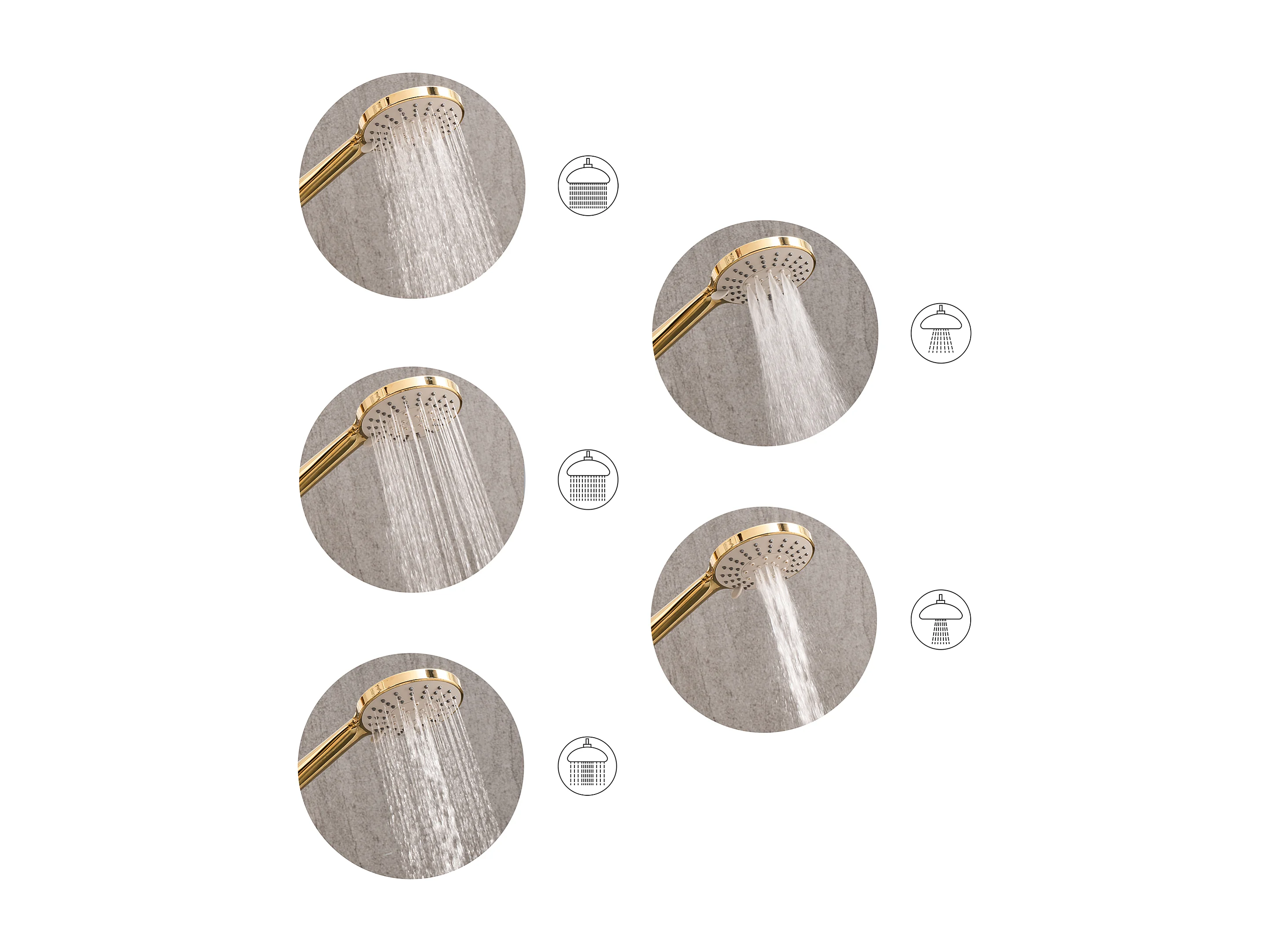 Kit de pommeau de douche avec tuyau flexible UCHIZA 5 modes Doré