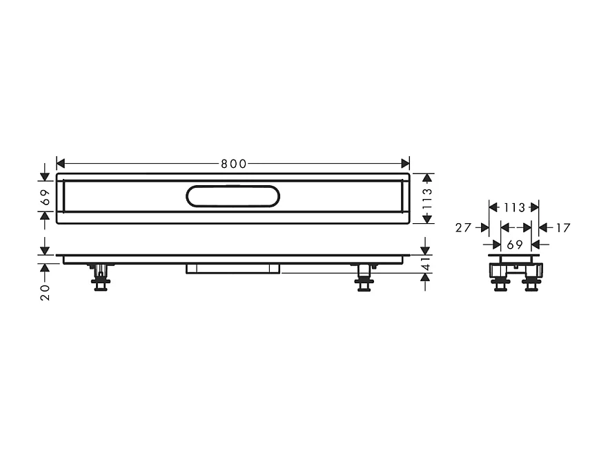 Kit d'installation caniveau de douche encastré à carreler HANSGROHE RainDrain 80 cm