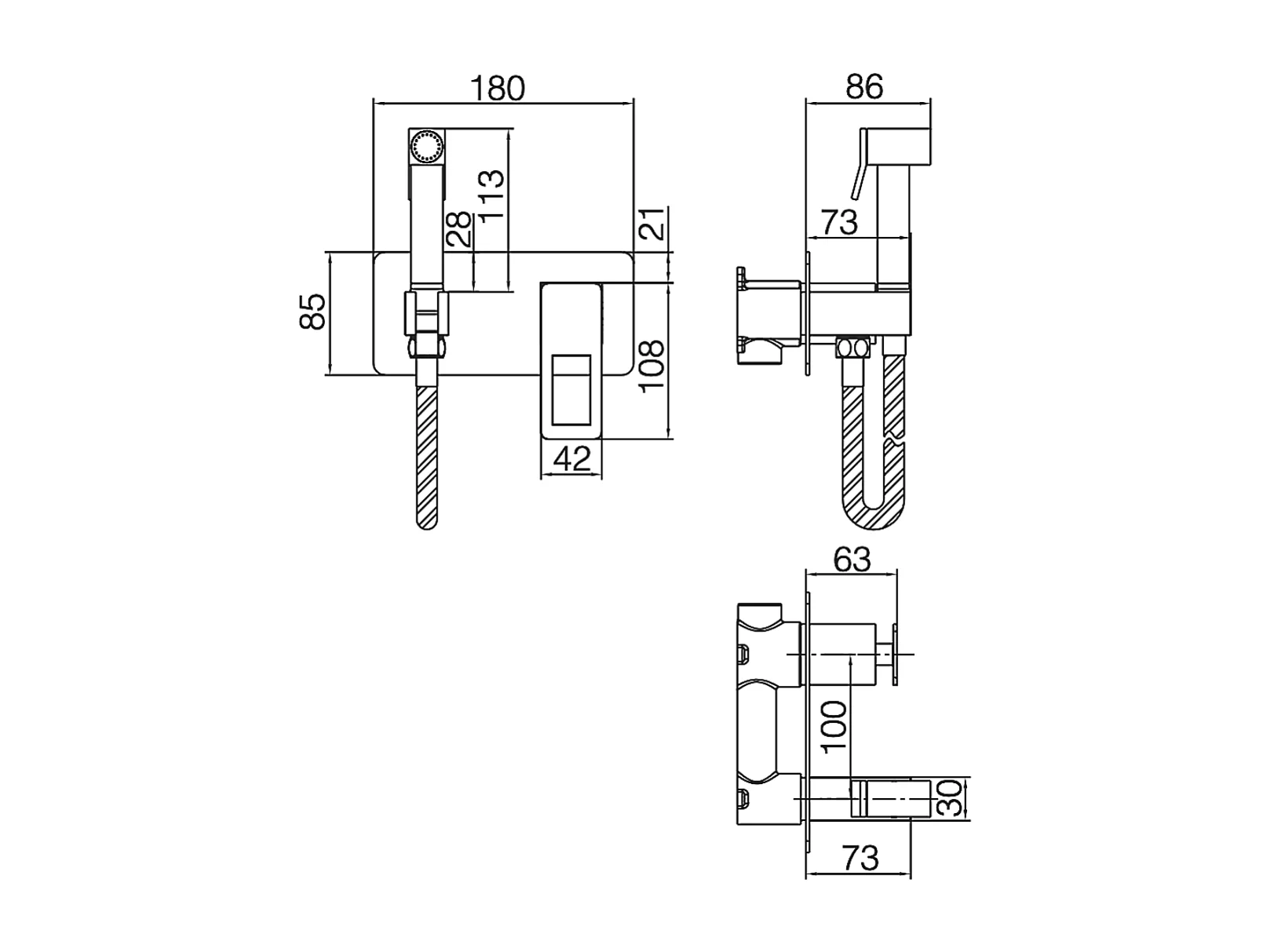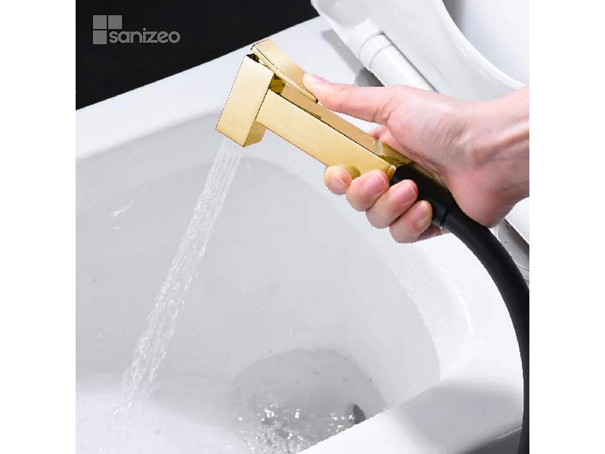 Kit Douchette hygiénique À ENCASTRER, WC ou Bidet Salle de Bain Noir et Or SUECIA BDC032-5/NGOLD