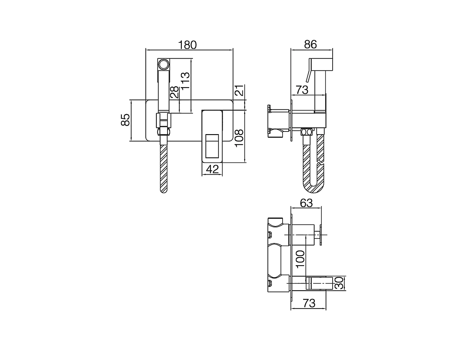 Kit Douchette hygiénique À ENCASTRER, WC ou Bidet Salle de Bain Noir Mat SUECIA BDC032-5/NG
