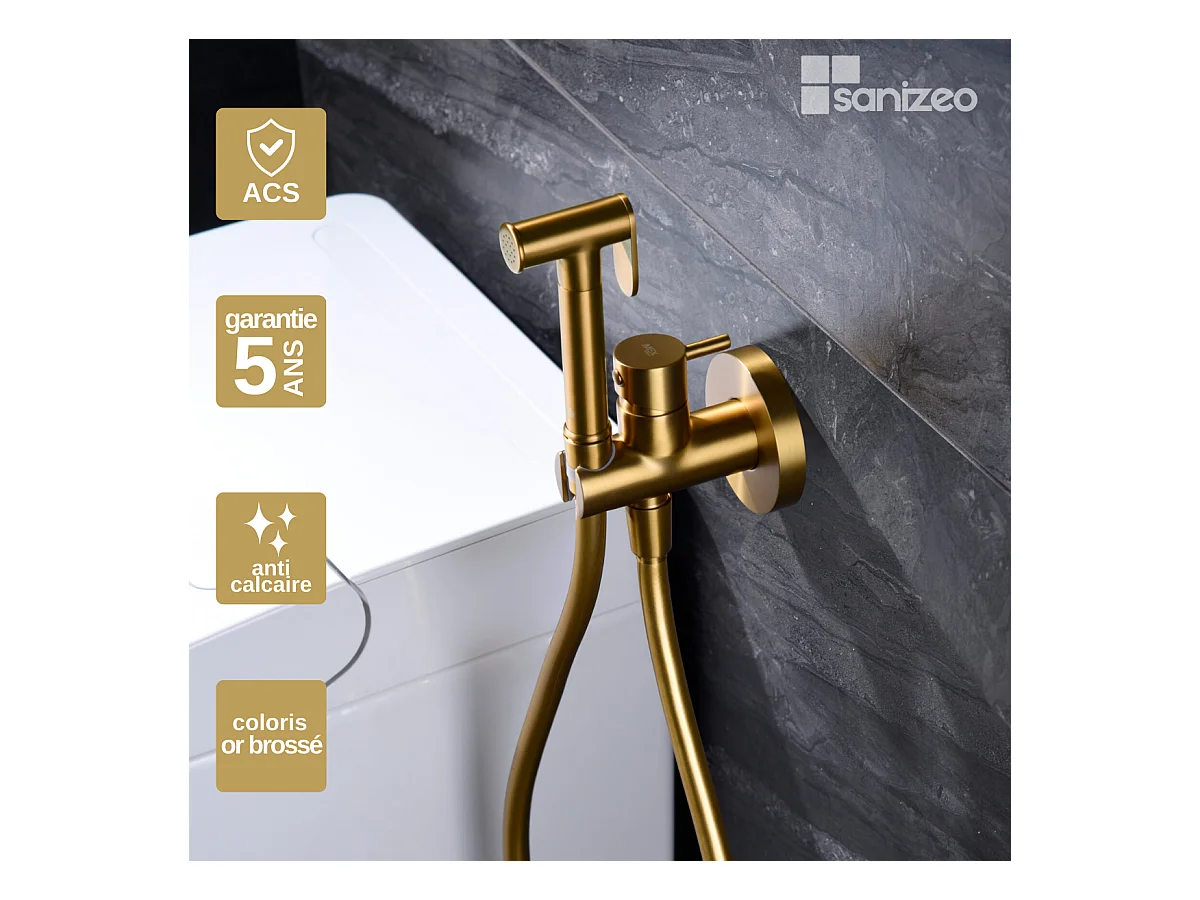 Kit Douchette hygiénique À ENCASTRER, WC ou Bidet Salle de Bain Or Brossé MUNICH RDM001/OC
