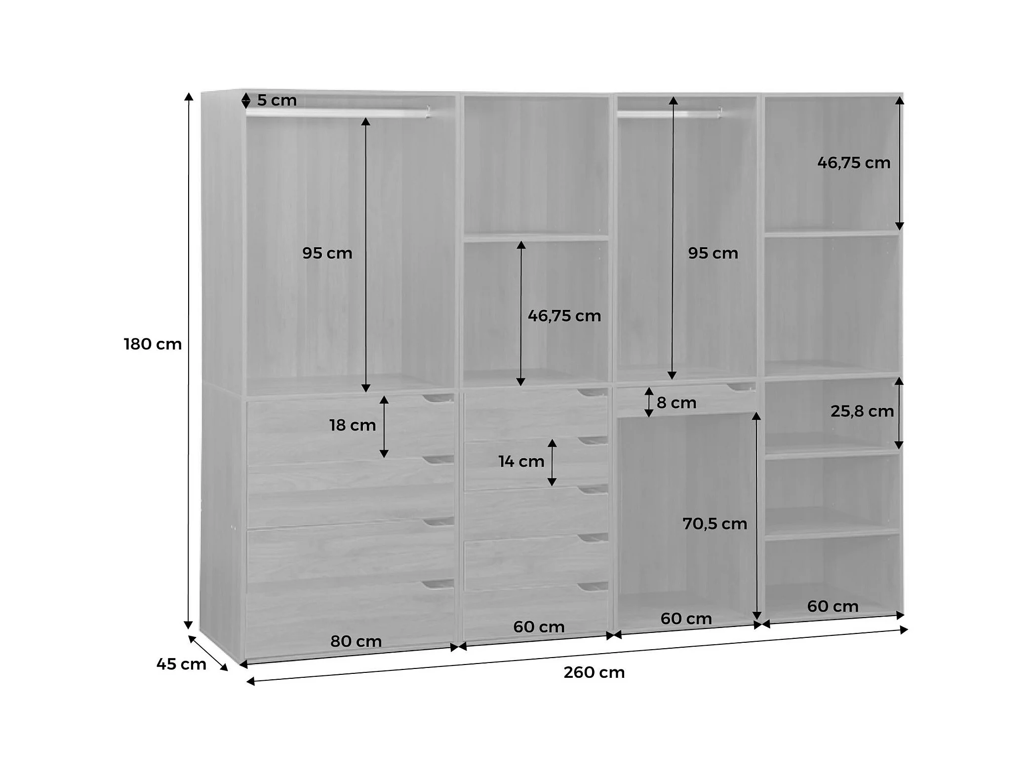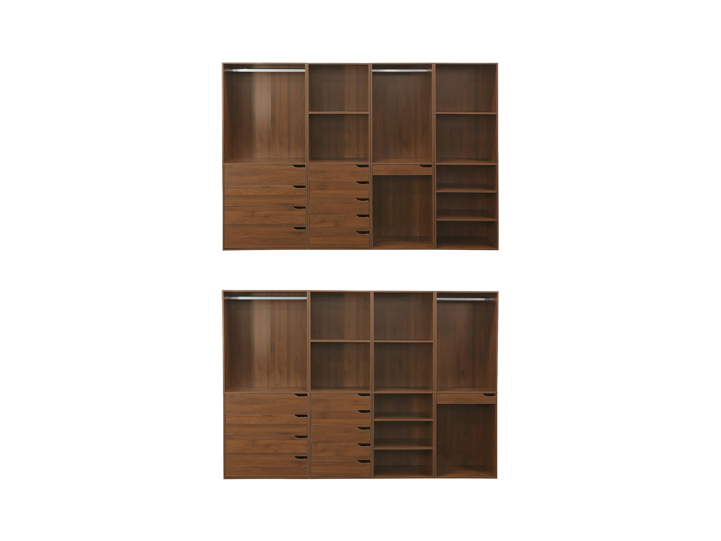 Kit dressing modulable avec 4 éléments. noyer. panneaux stratifiés