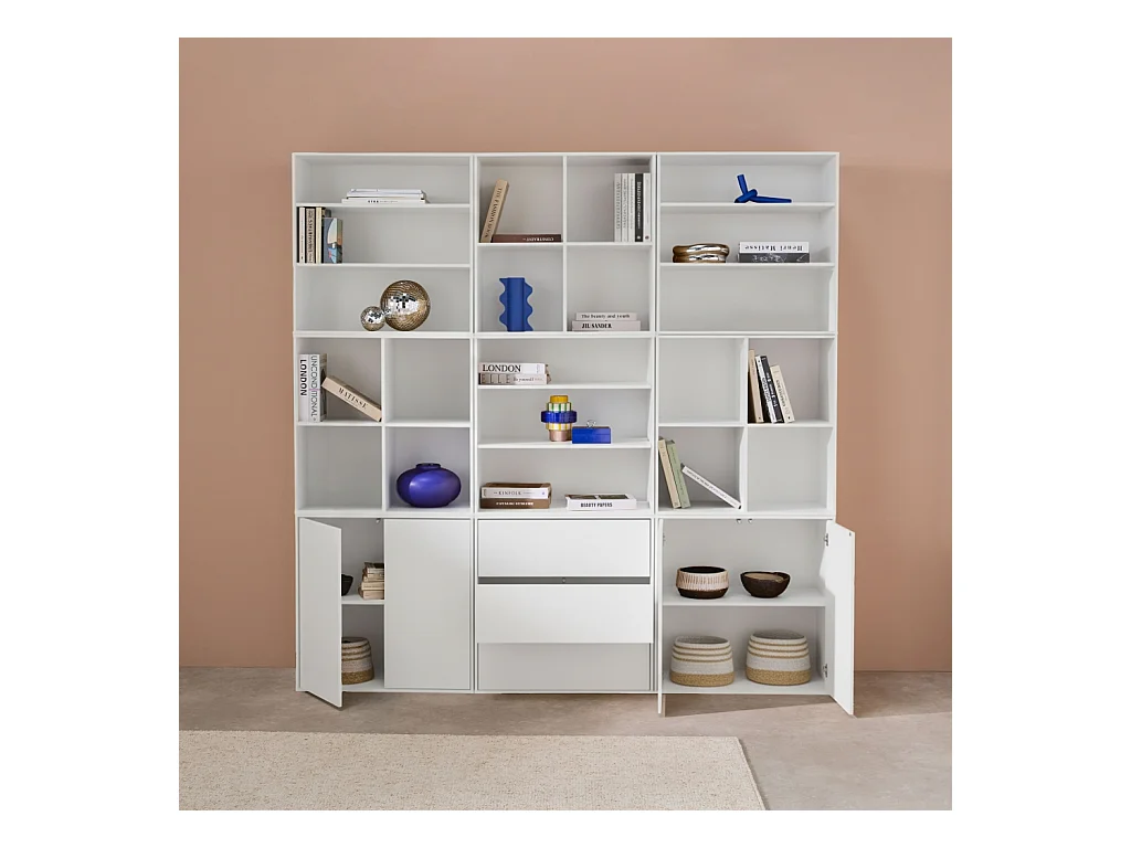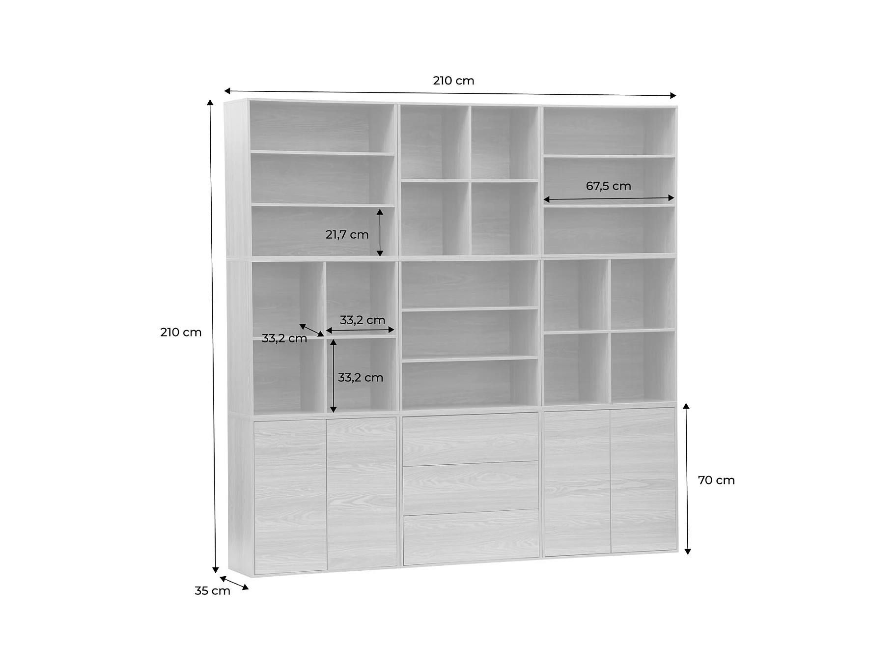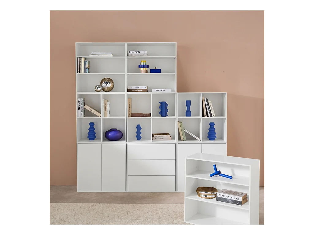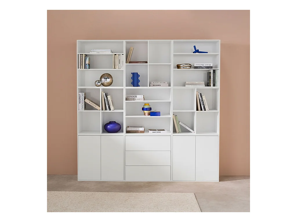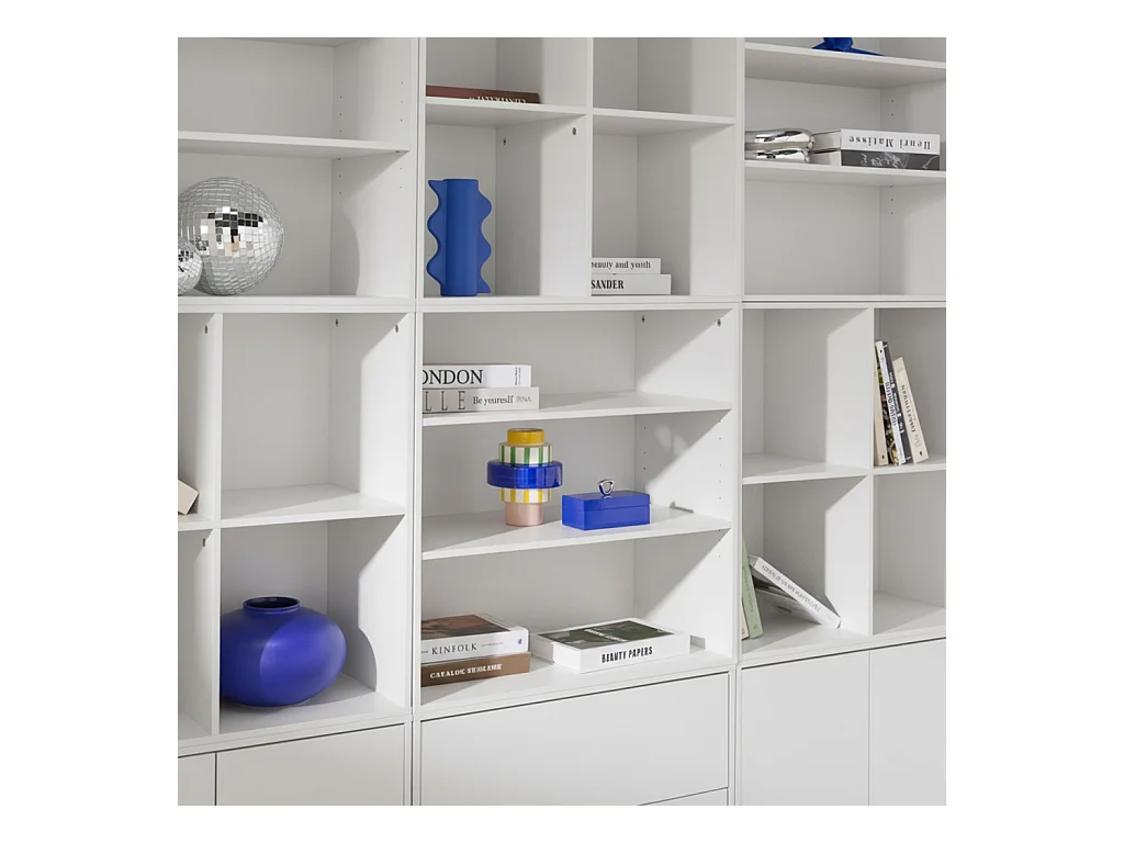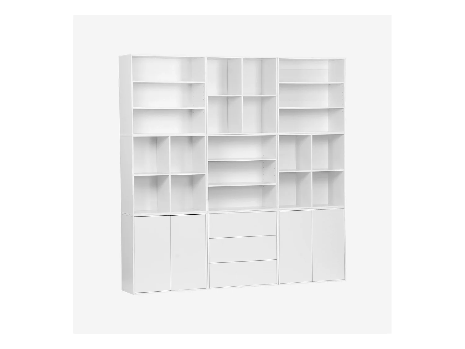 Kit étagère. bibliothèque décor bois blanc 9 éléments 100% modulable L 210 x P 35 x H 210cm - Kompo