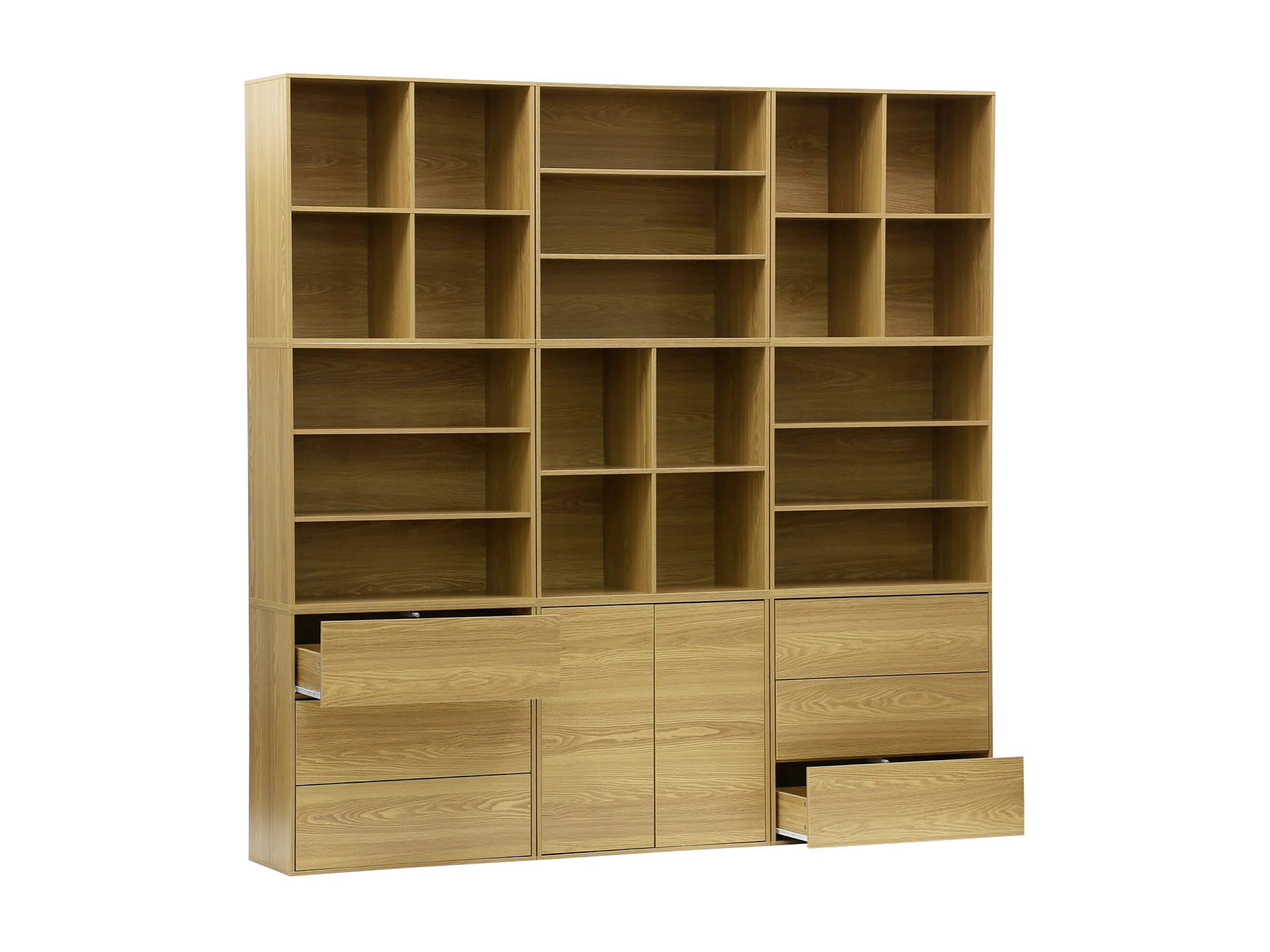 Kit étagère. bibliothèque décor bois chêne 9 éléments 100% modulable L 210 x P 35 x H 210cm - Kompo