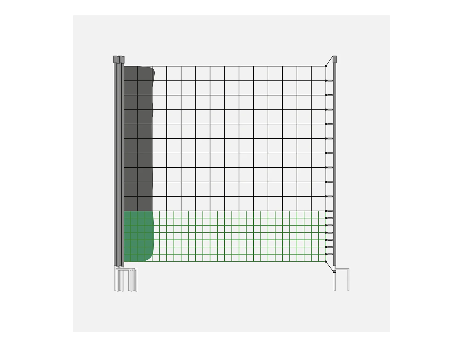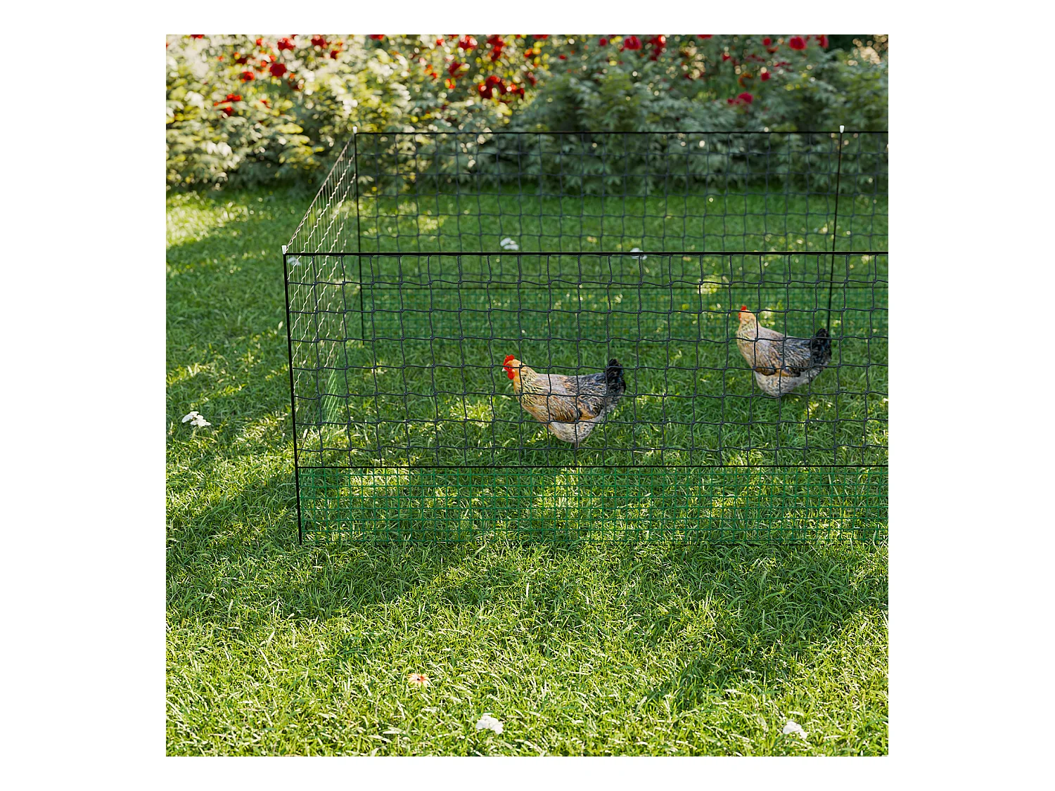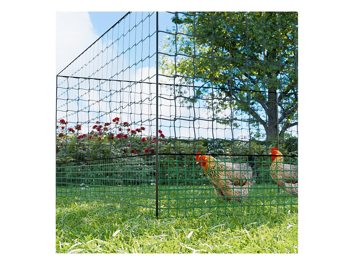 Kit filet clôtures pour poules 24m avec 8 piquets double pointes. modulable. porte d'accès. sardines incluses