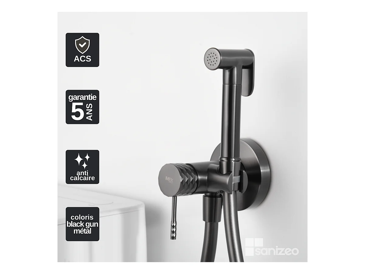 Kit Hygiène Douchette de WC / Bidet Encastré Black Gun Métal IMEX GENOVA RDG053/BGM