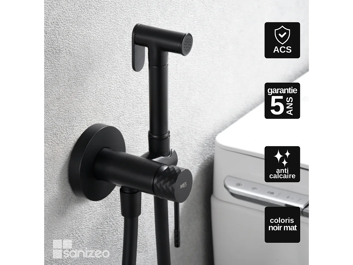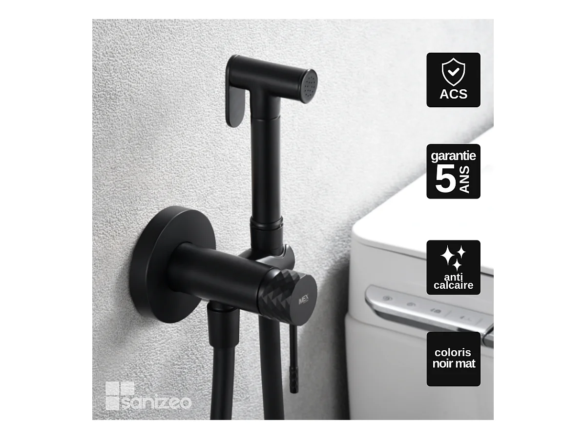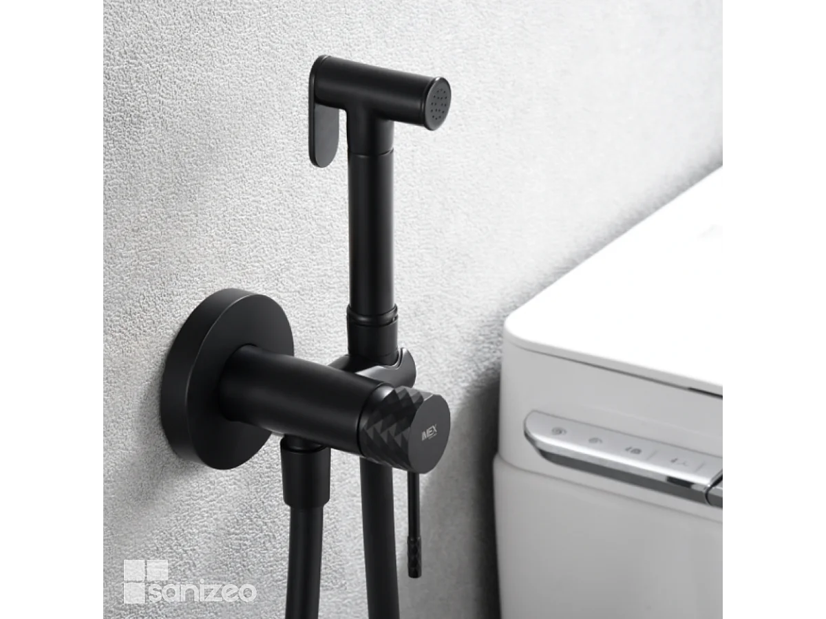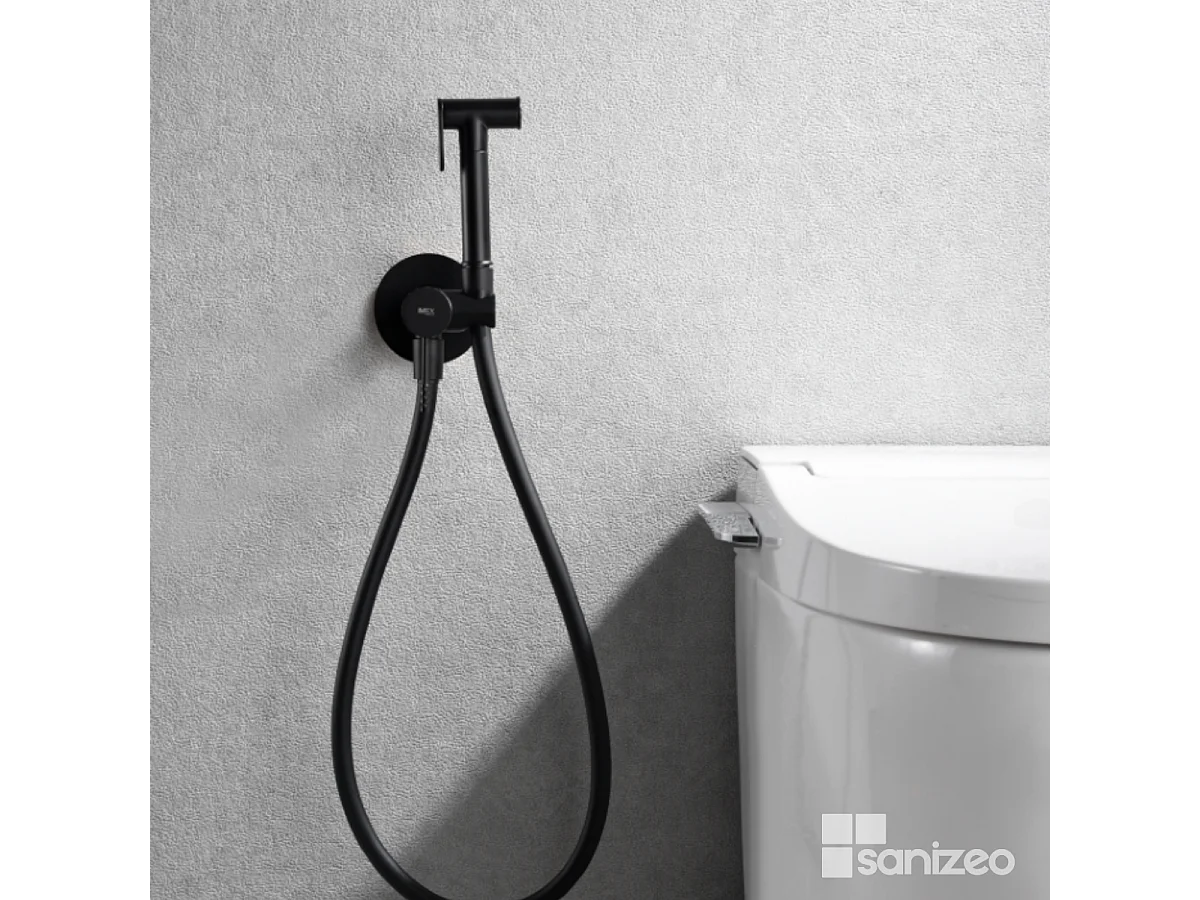 Kit Hygiène Douchette de WC / Bidet Encastré Noir Mat IMEX GENOVA RDG053/NG