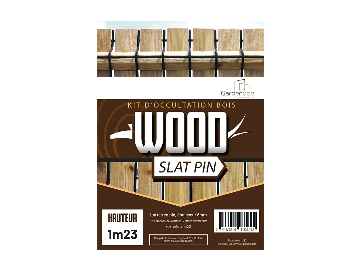 Kit occultation lamelles bois pin pour panneau rigide maille 55 H 1m23 L 2m50 ep 8mm