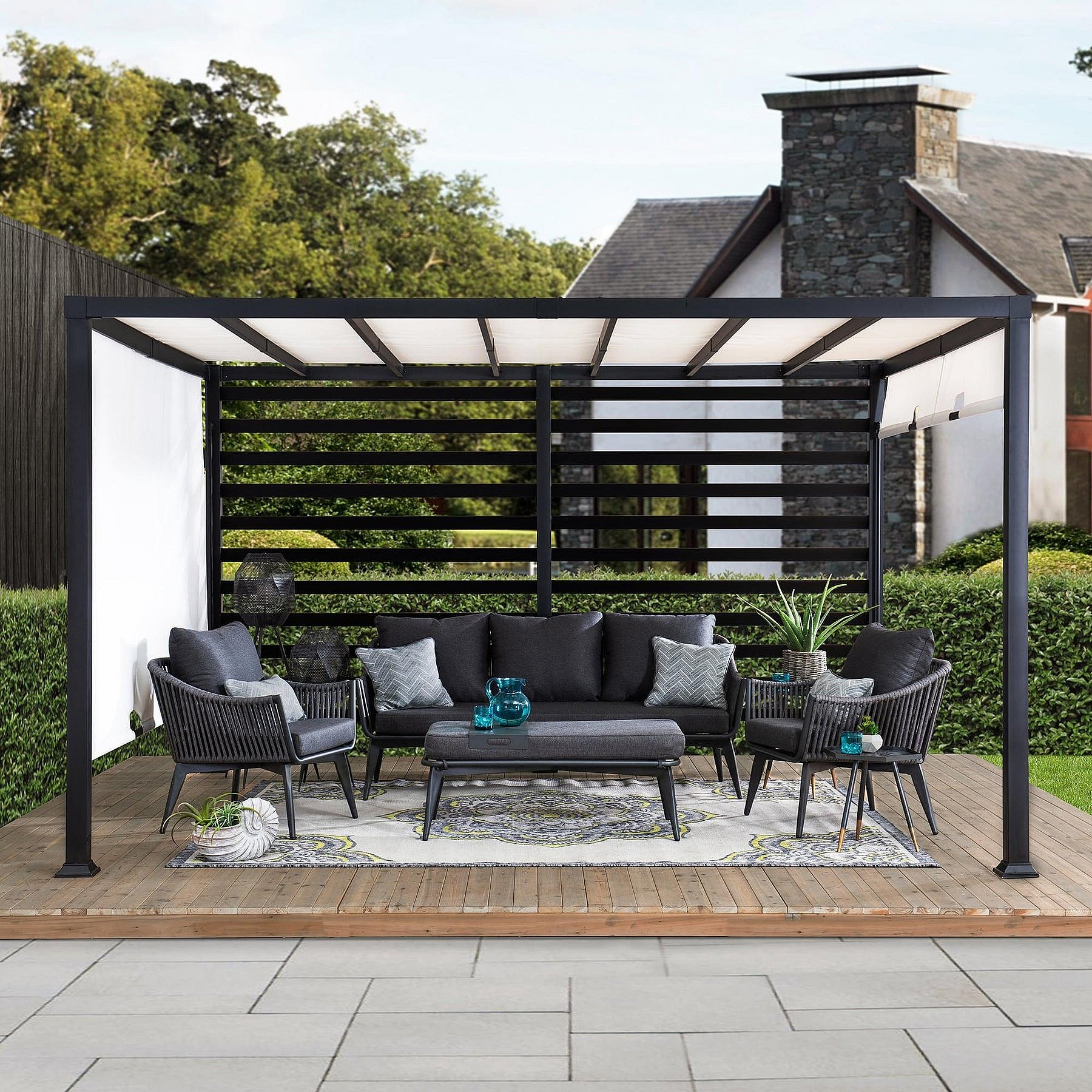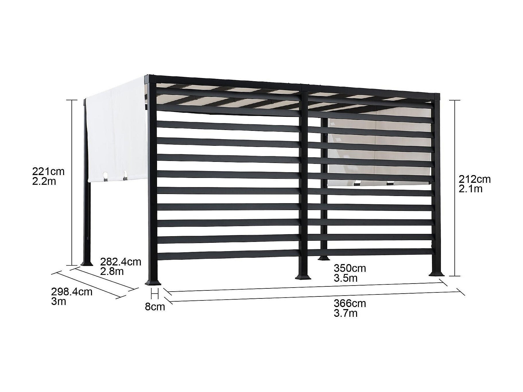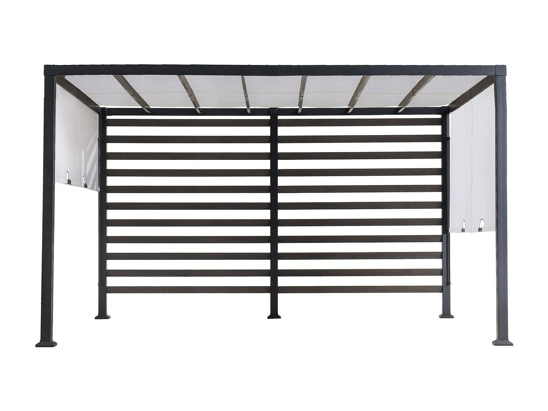 Kit pergola en acier avec auvent réglable blanc et mur d'intimité OETA 304 cm x 372 cm