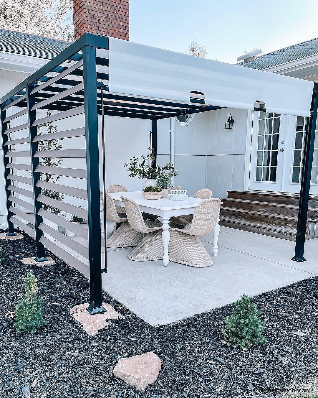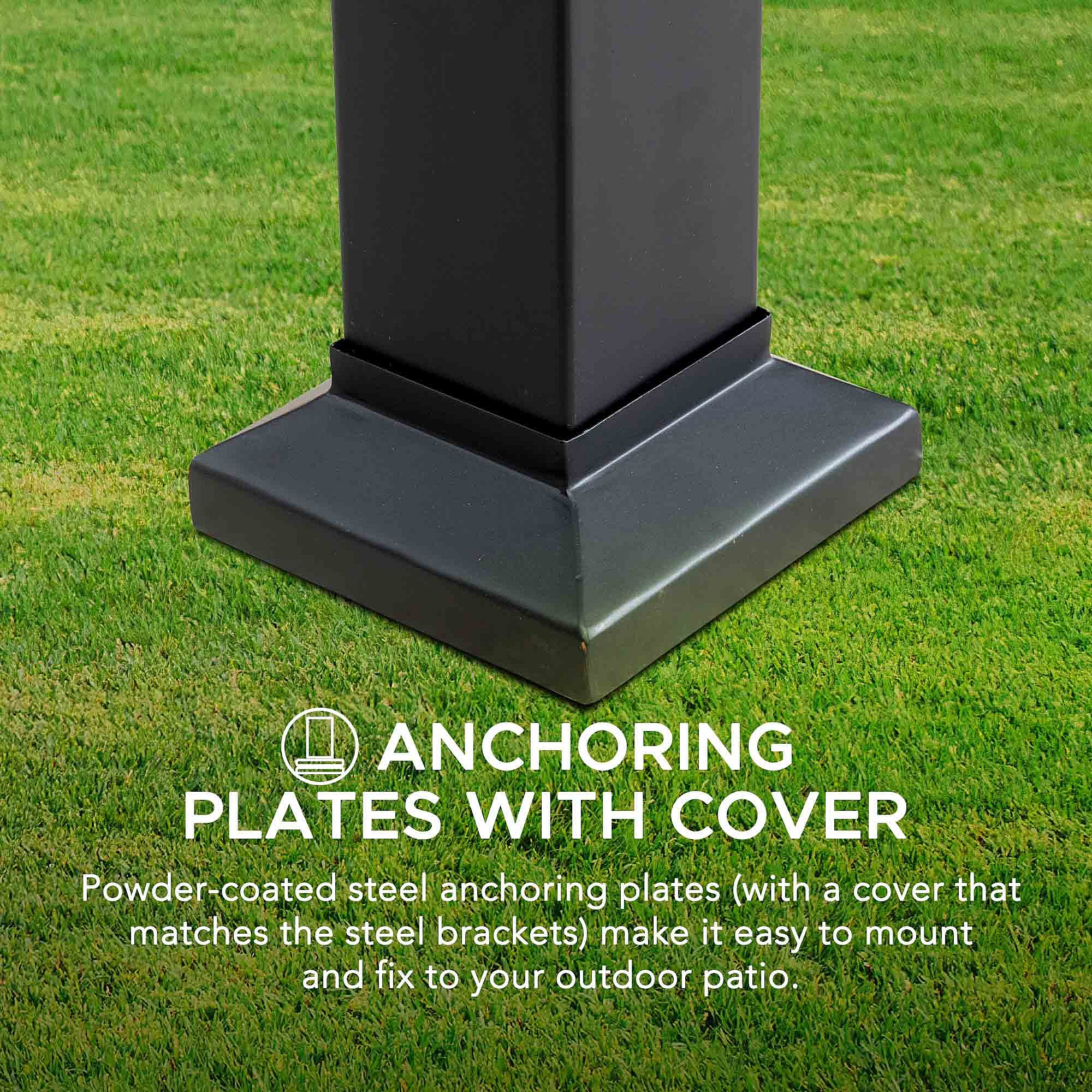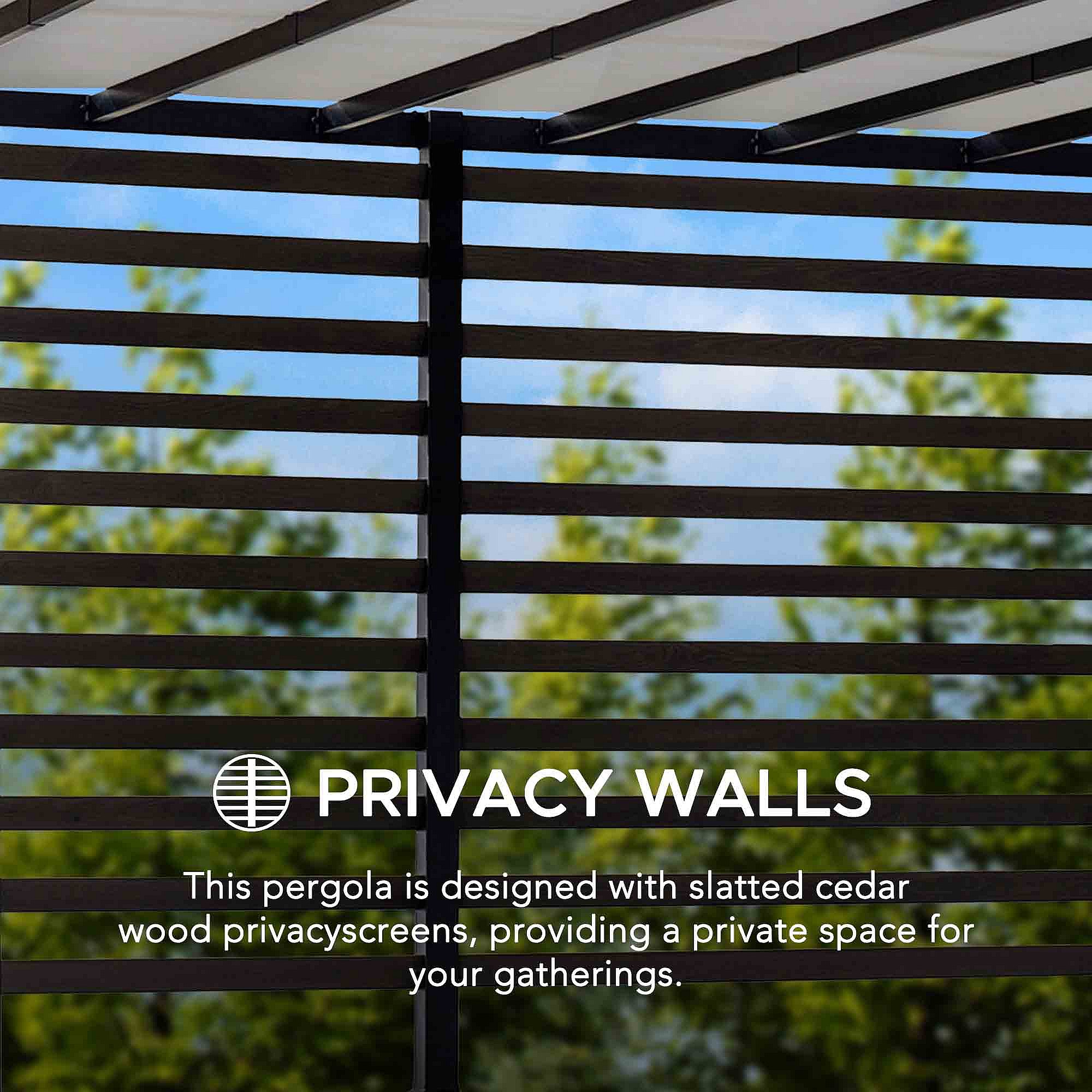 Kit pergola en acier avec auvent réglable blanc et mur d'intimité OETA 304 cm x 372 cm