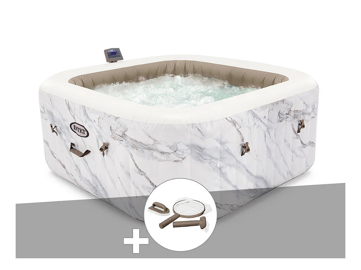 Kit spa gonflable Intex PureSpa Calacatta carré Bulles 4 places + Kit d'entretien