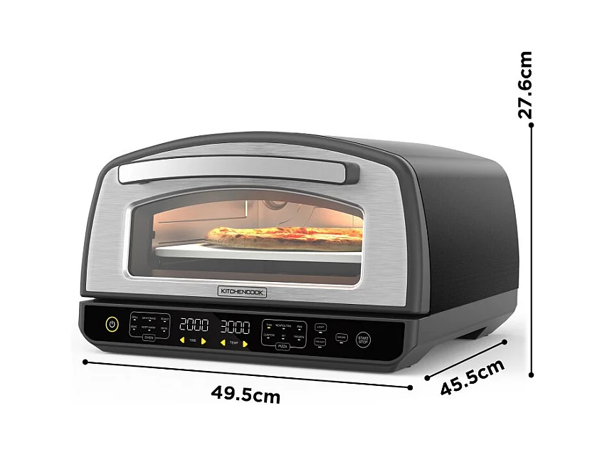 Kitchencook - Four à Pizza - 2000w - Jusqu'à 450°c - 12 Programmes - Plaque De Cuisson En émail, Pelle Et Coupe Pizza En Inox