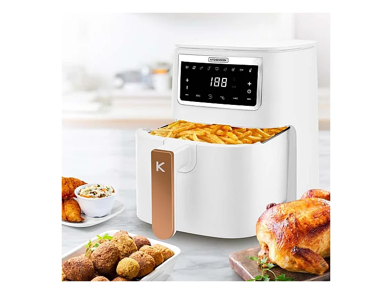 Kitchencook - Friteuse Sans Huile 4l - 8 Programmes - Minuterie Numérique - Thermostat Réglable - 1400w - Blanc