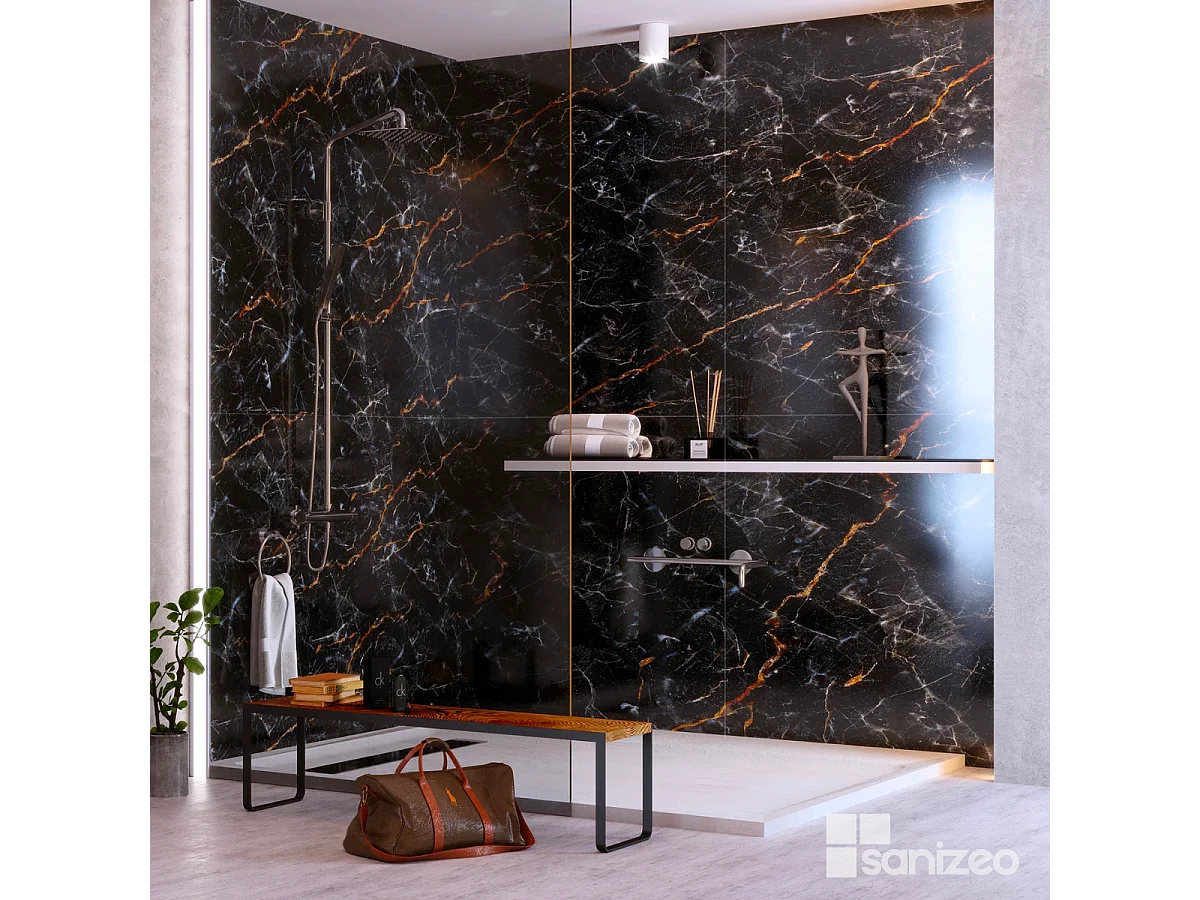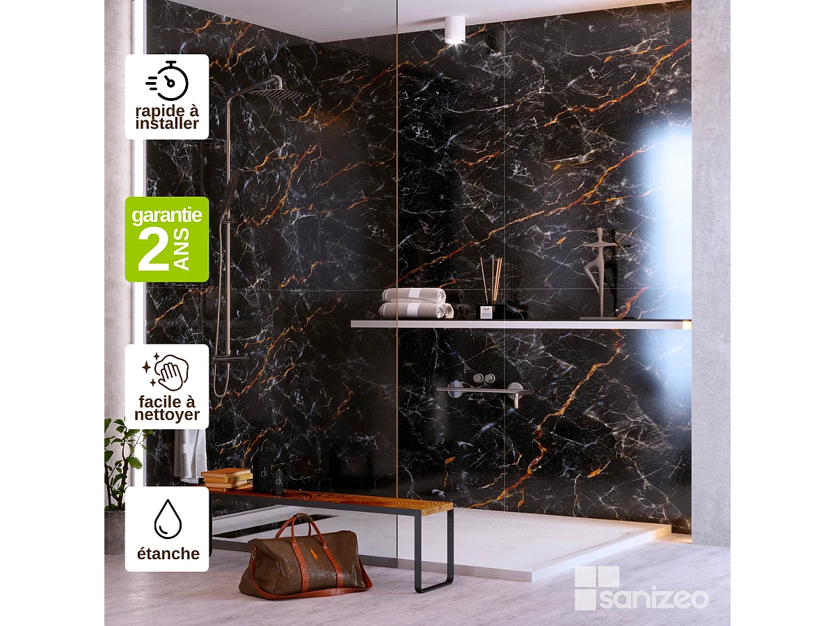 Lot de 2 Panneaux d'Habillage pour Douche et Baignoire, L120*l120*0.4 cm, effet marbre gris, Promise by SANIZÉO