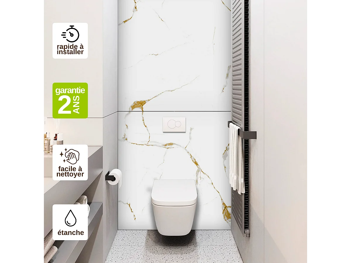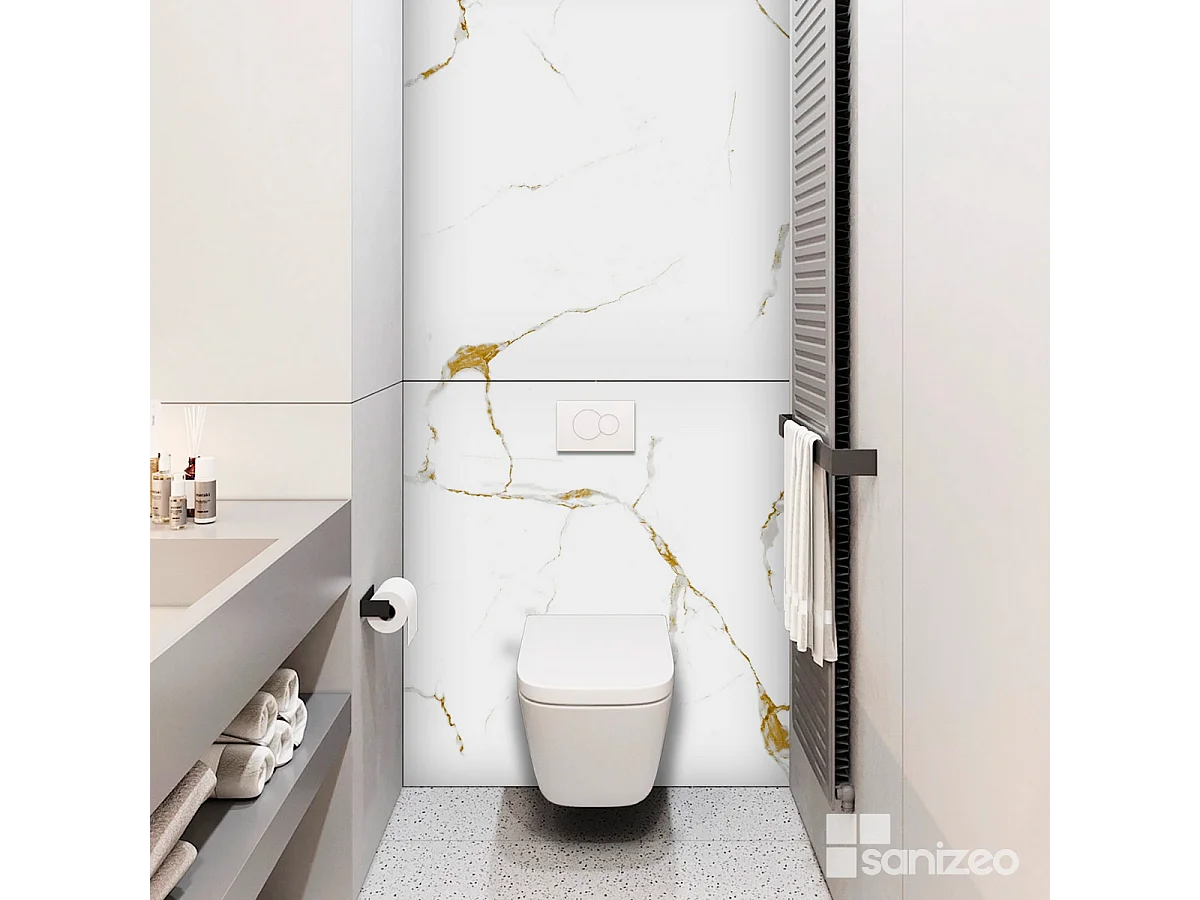 Panneau Habillage WC suspendu , L120*l120*0.4 cm, effet doré, Calacatta GOLD by SANIZÉO