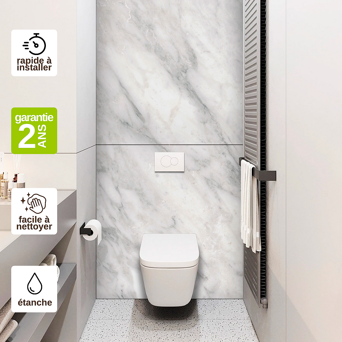 Panneau Habillage WC suspendu , L120*l120*0.4 cm, effet marbre gris, Versilia by SANIZÉO