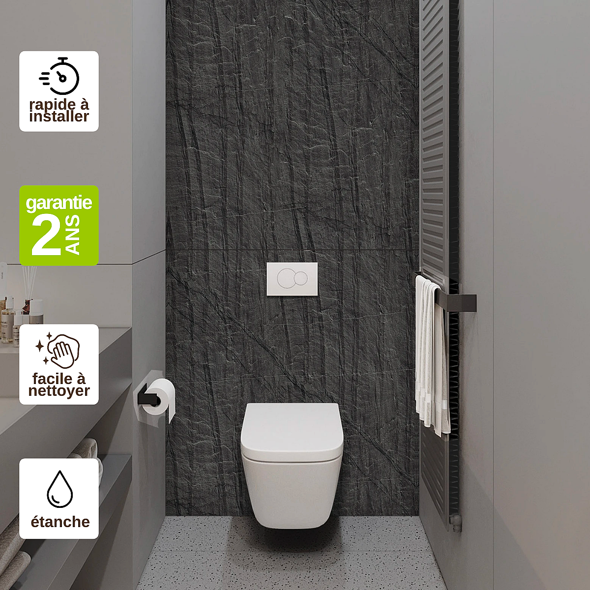 Panneau Habillage WC suspendu , L120*l120*0.4 cm, effet effet pierre noire, Manson by SANIZÉO