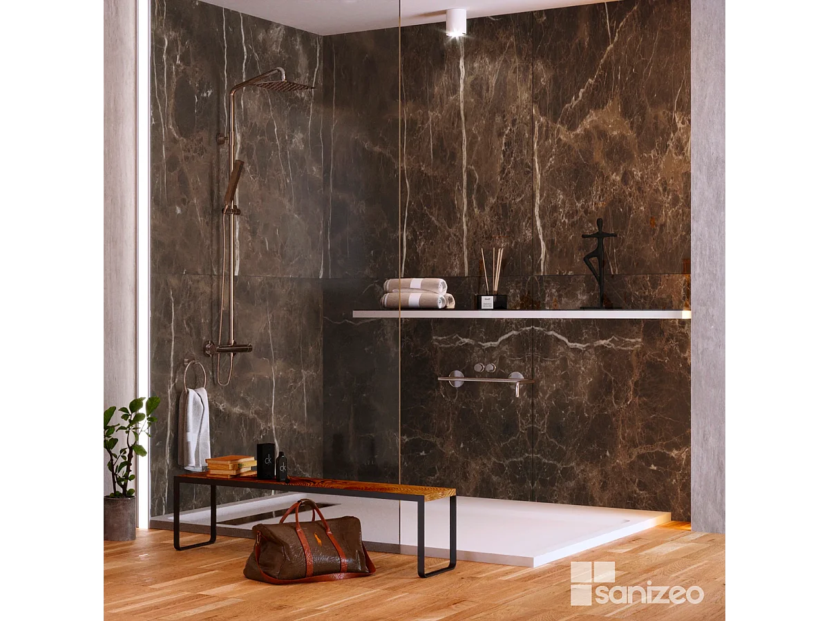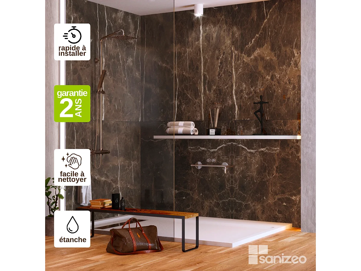 Lot de 2 Panneaux d'Habillage pour Douche et Baignoire, L120*l120*0.4 cm, effet marbre marron, Emperador by SANIZÉO