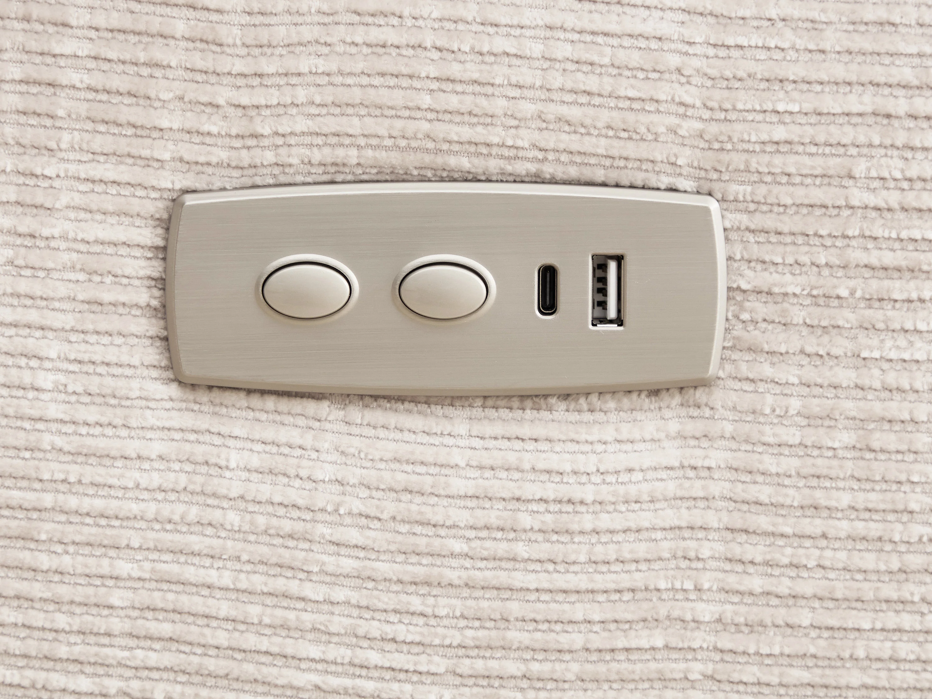 Canapé 2 places relax électrique massant en tissu chenille beige KOCENI
