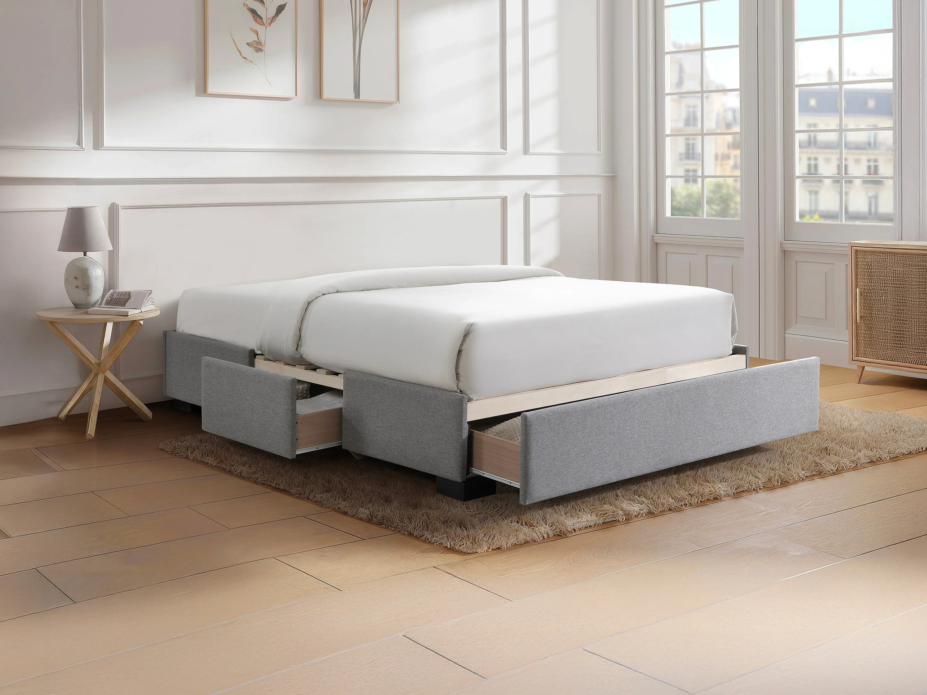 Sommier avec tiroirs 160 x 200 cm - Tissu gris - KOLANE de YSMÉE