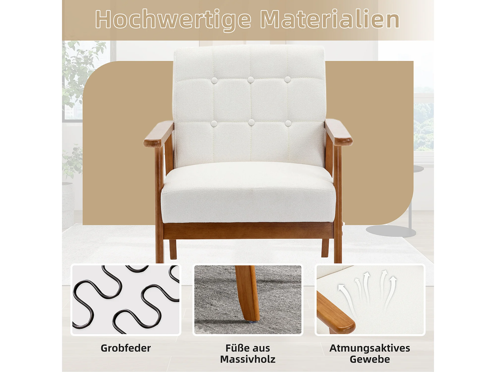 KOMHTOM Chaise longue avec accoudoirs et pieds en bois massif, chaise d'appoint moderne du milieu du siècle, Beige
