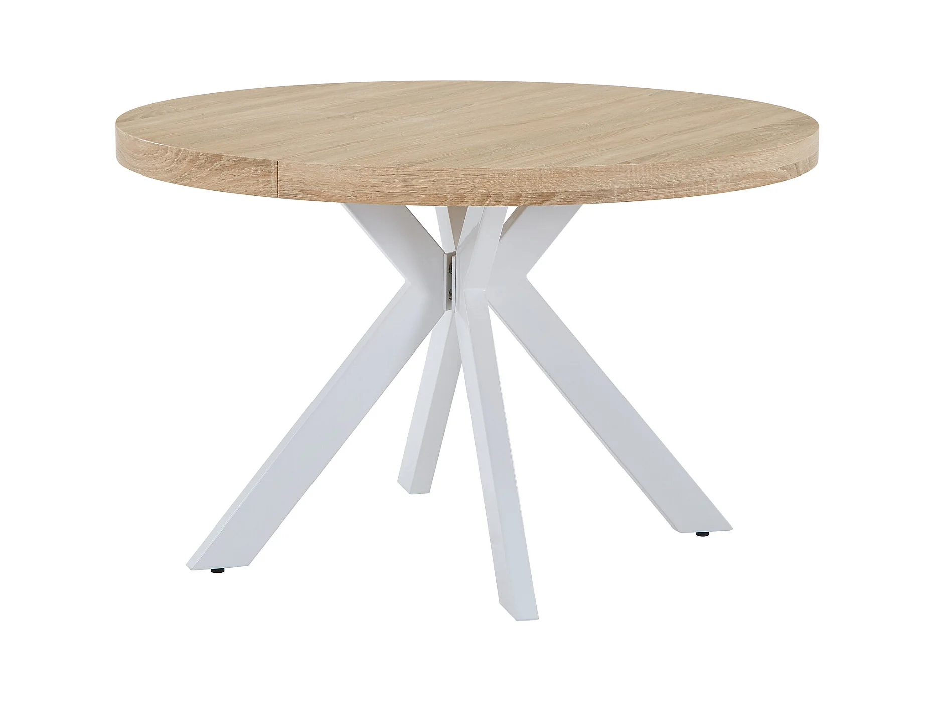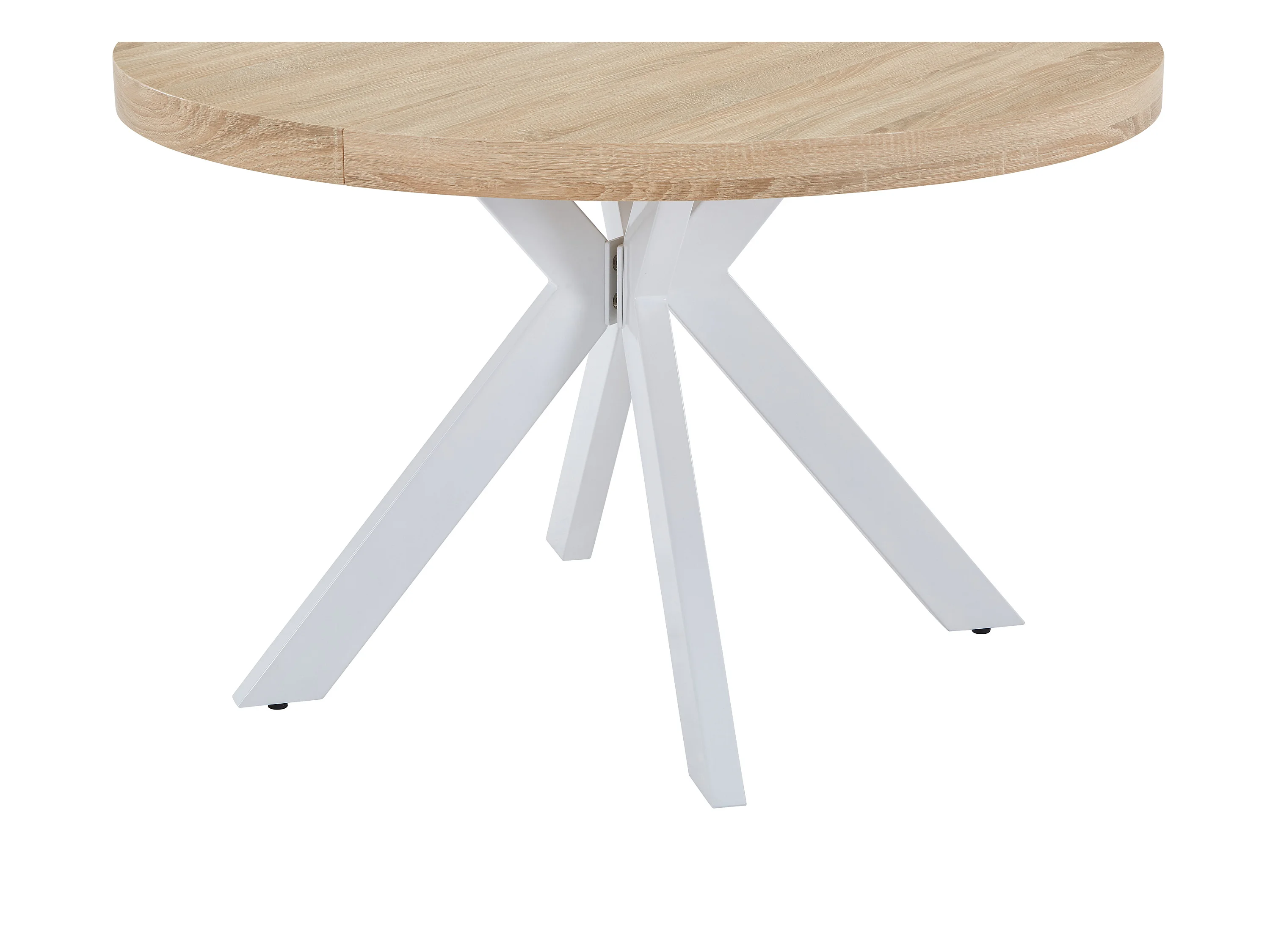 Table à manger extensible 4 à 8 personnes en MDF et acier - Naturel clair et blanc - KOMONI