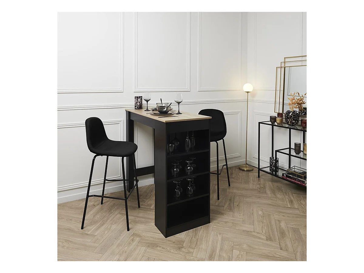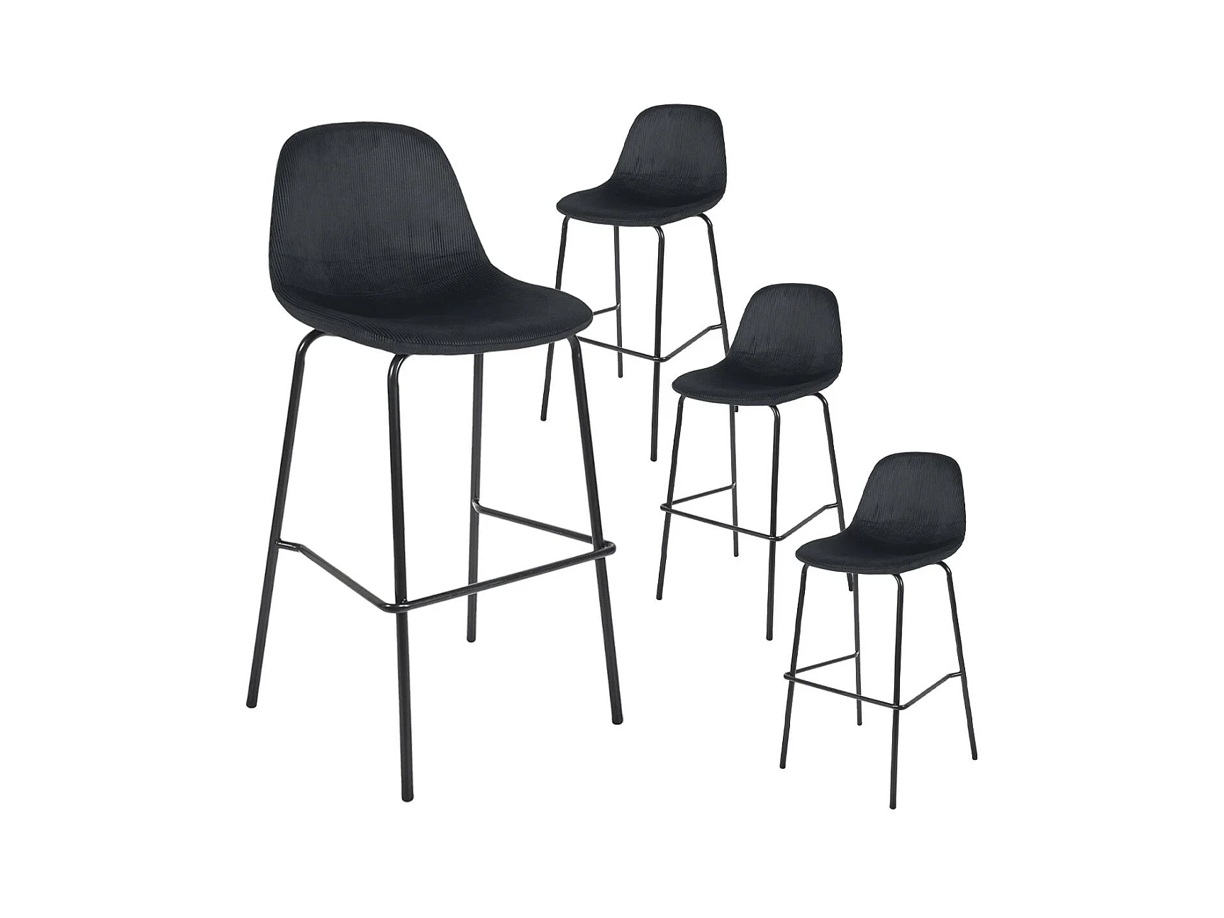 KONAE - Lot de 4 Tabourets de Bar en Velours Côtelé Noir
