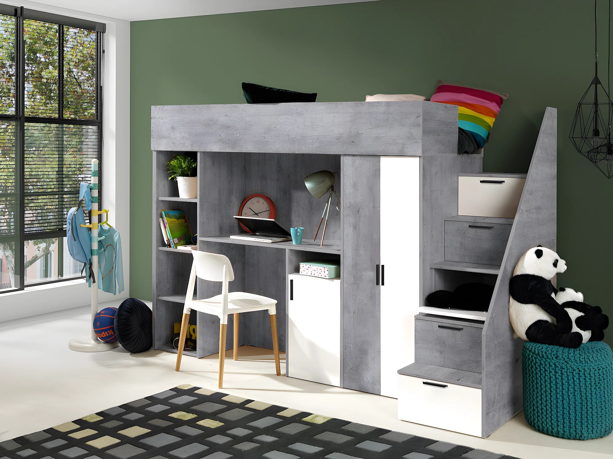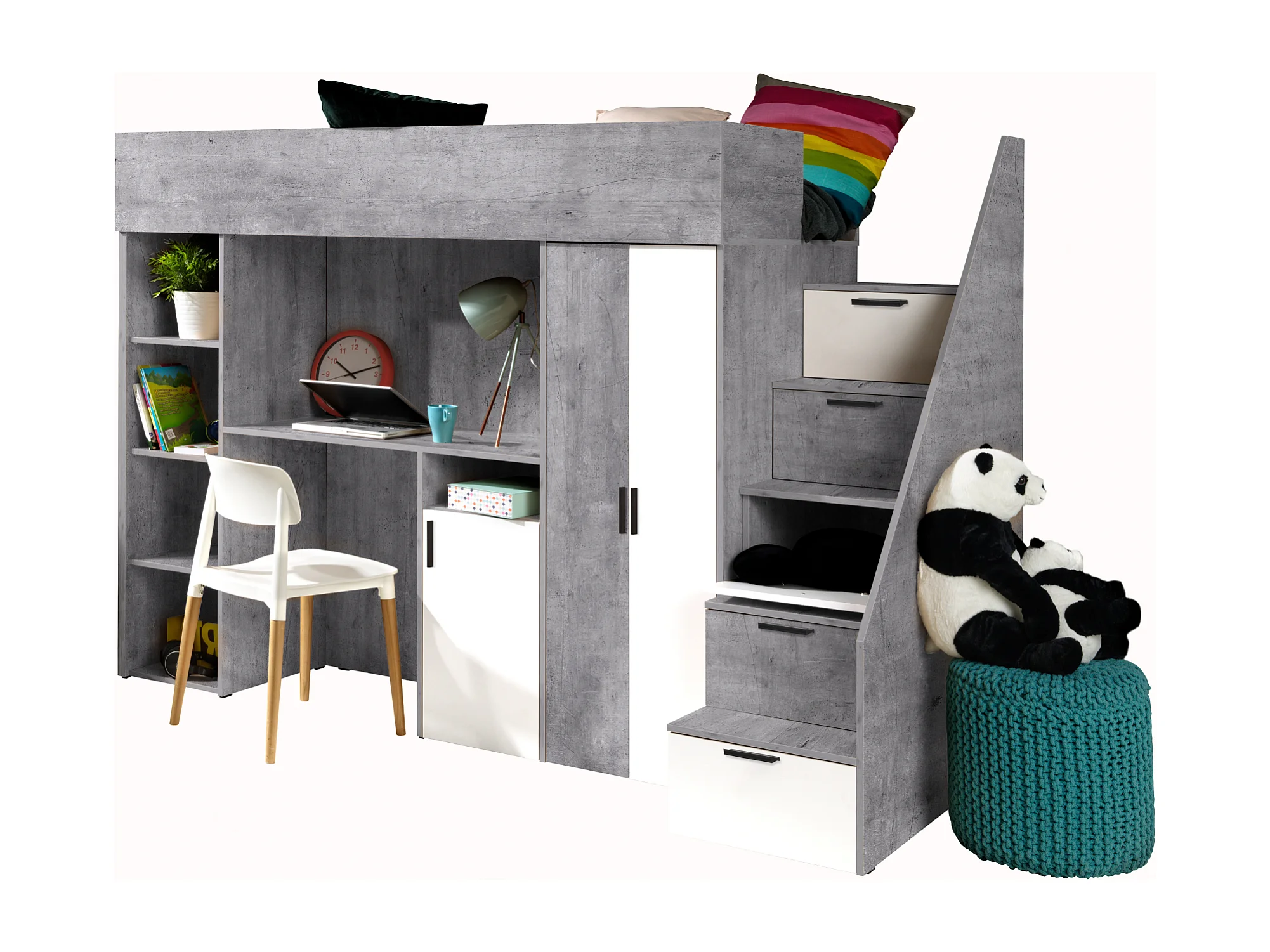 KONKRET 14 Lit superposé 247/165/120 (béton/blanc)