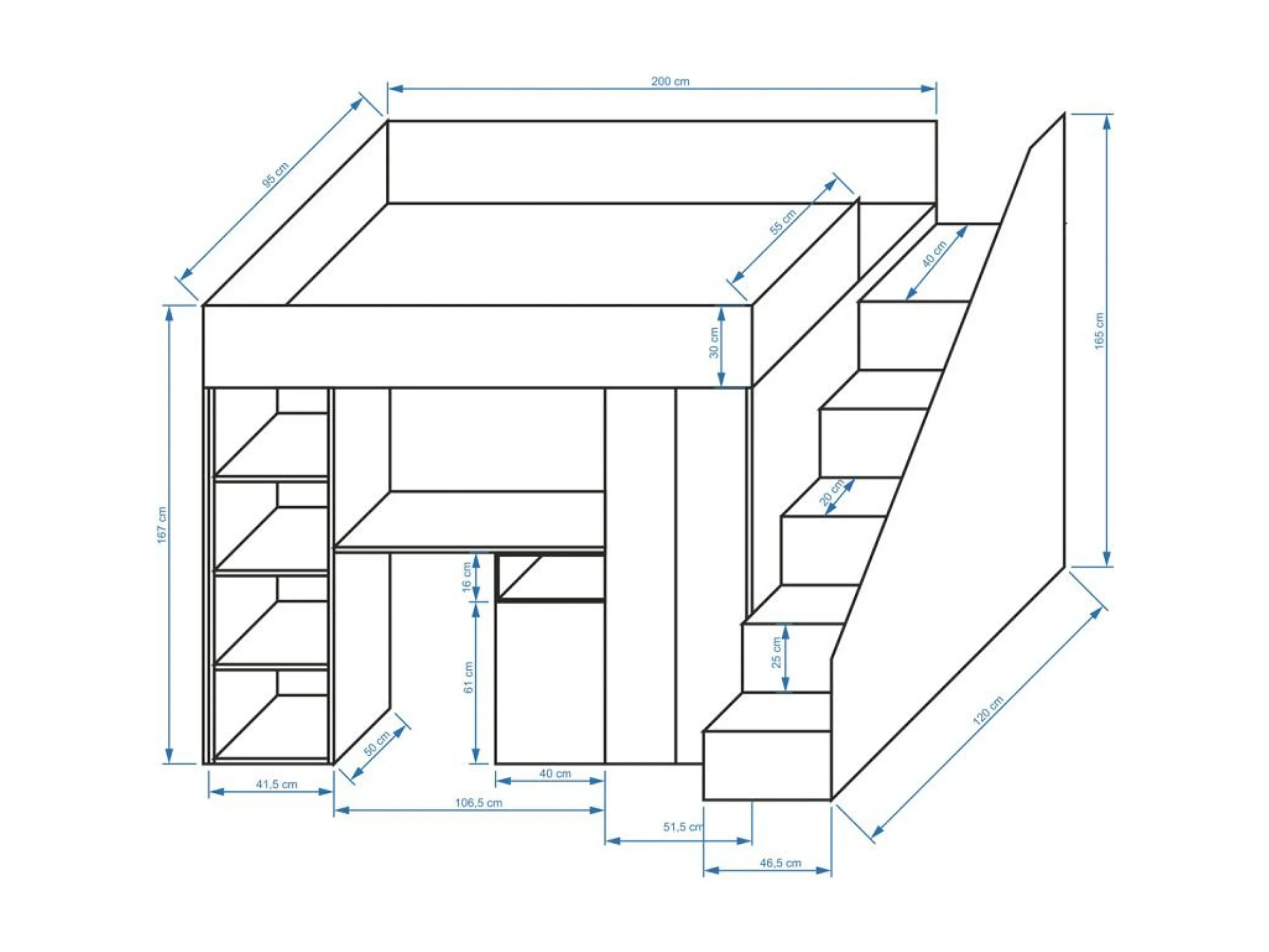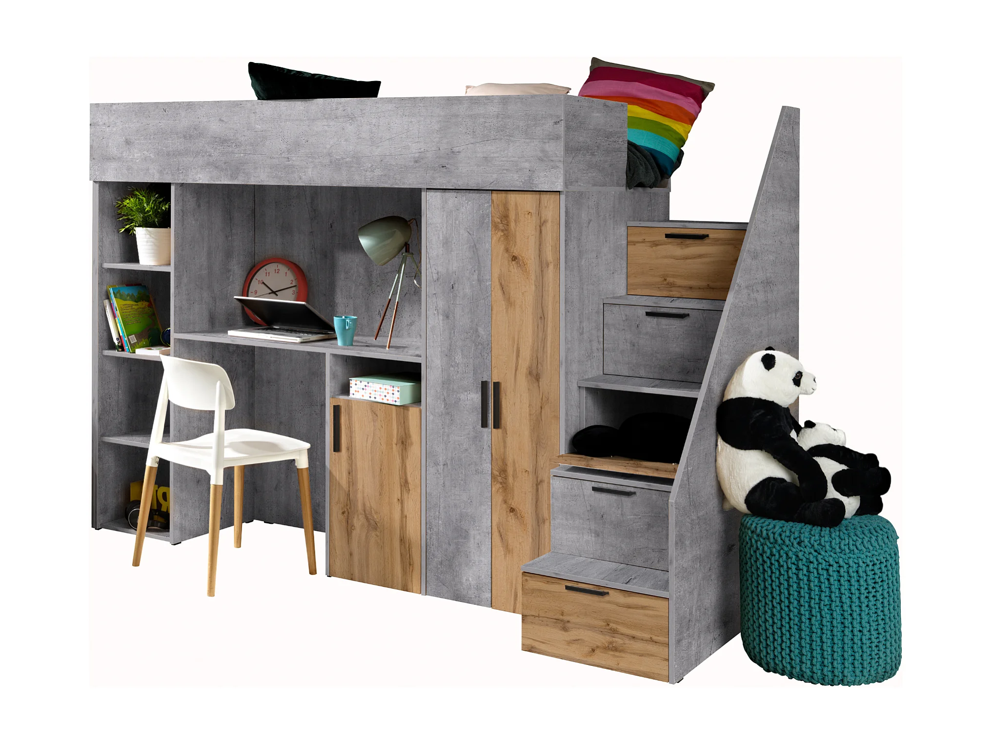 KONKRET 14 Lit superposé 247/165/120 (béton/wotan)