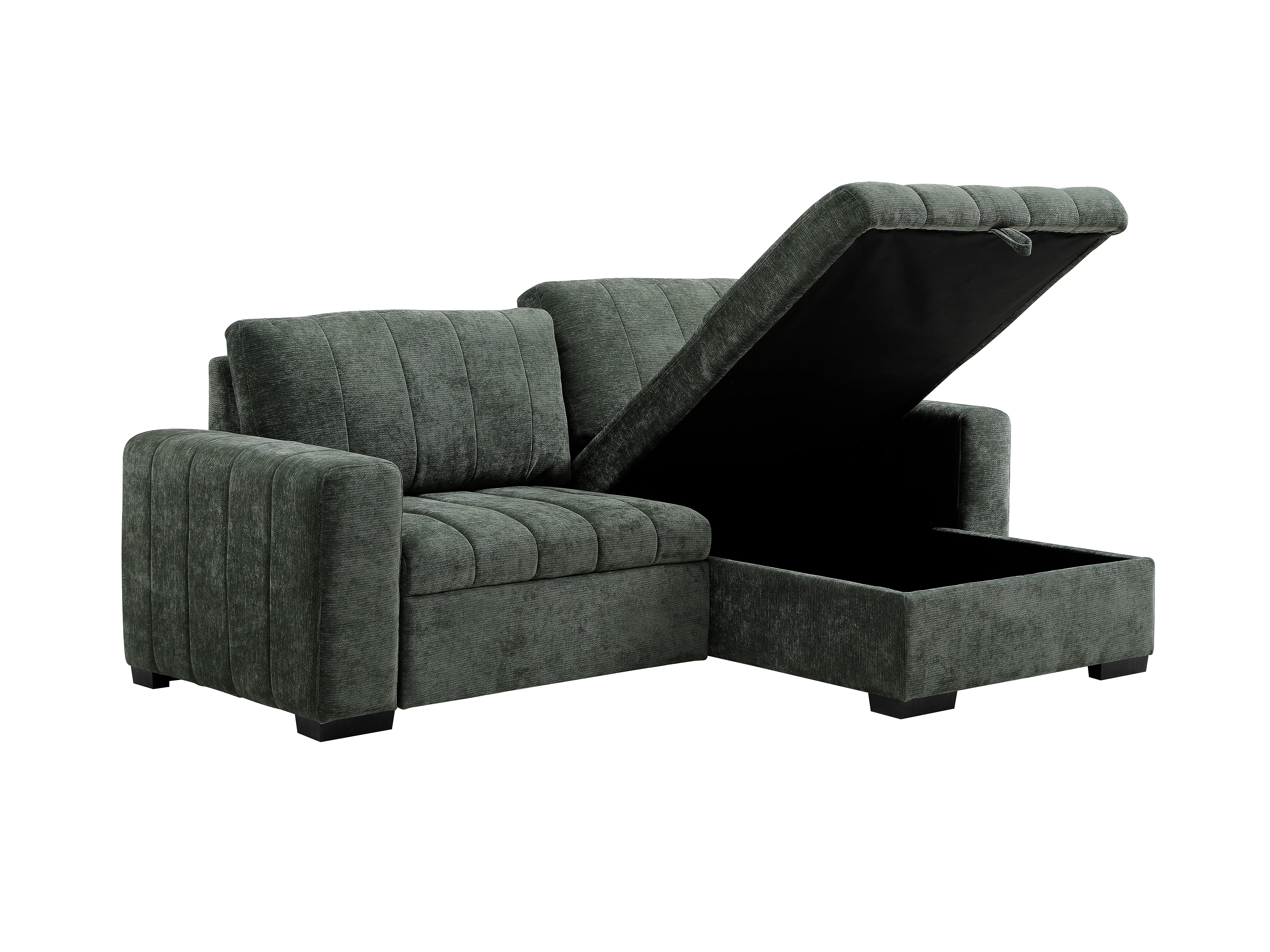 Canapé d'angle convertible et réversible en tissu texturé vert KONOTI