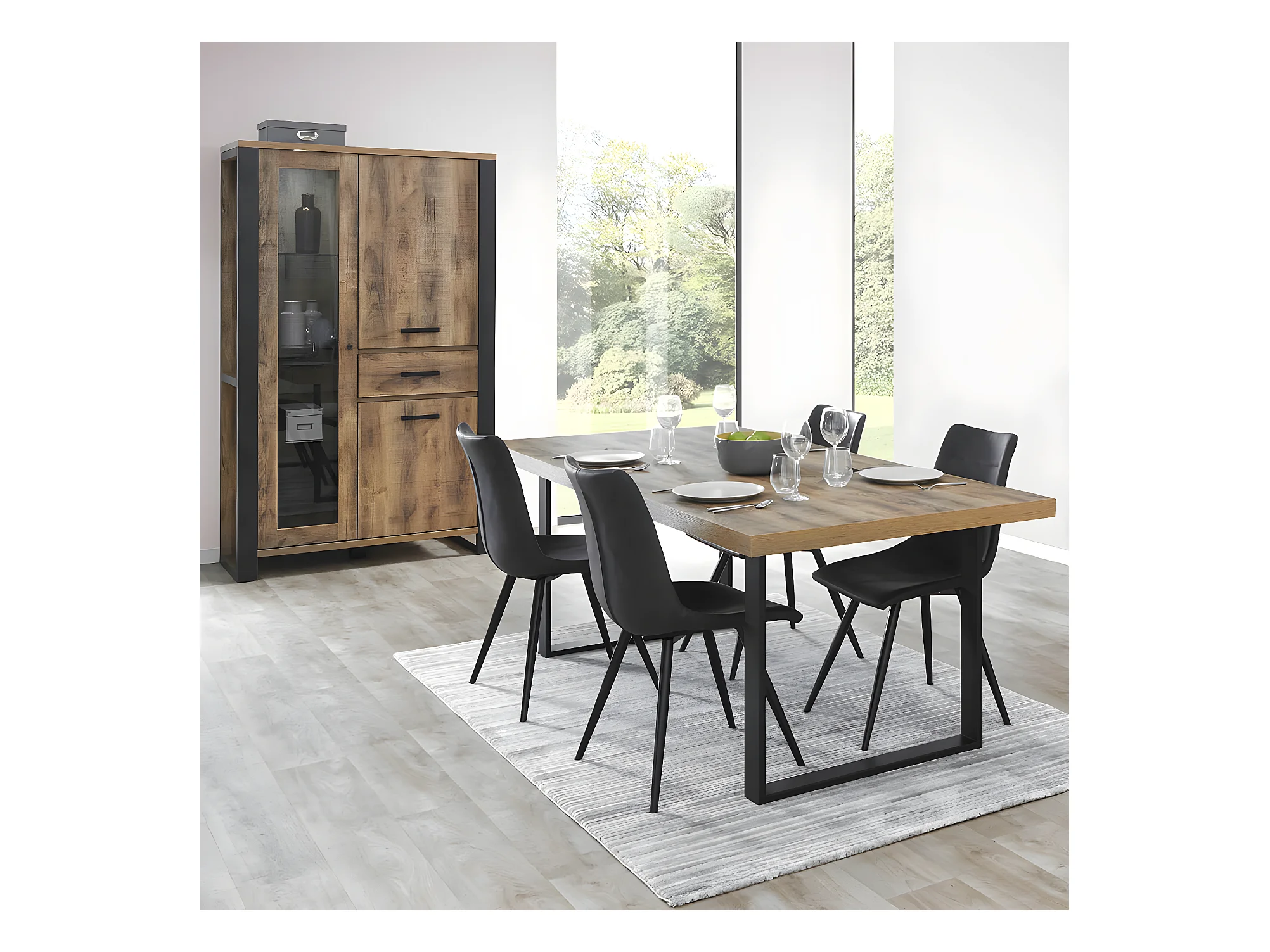 KORA - Ensemble Table 200cm + Vitrine 3 Portes 1 Tiroir