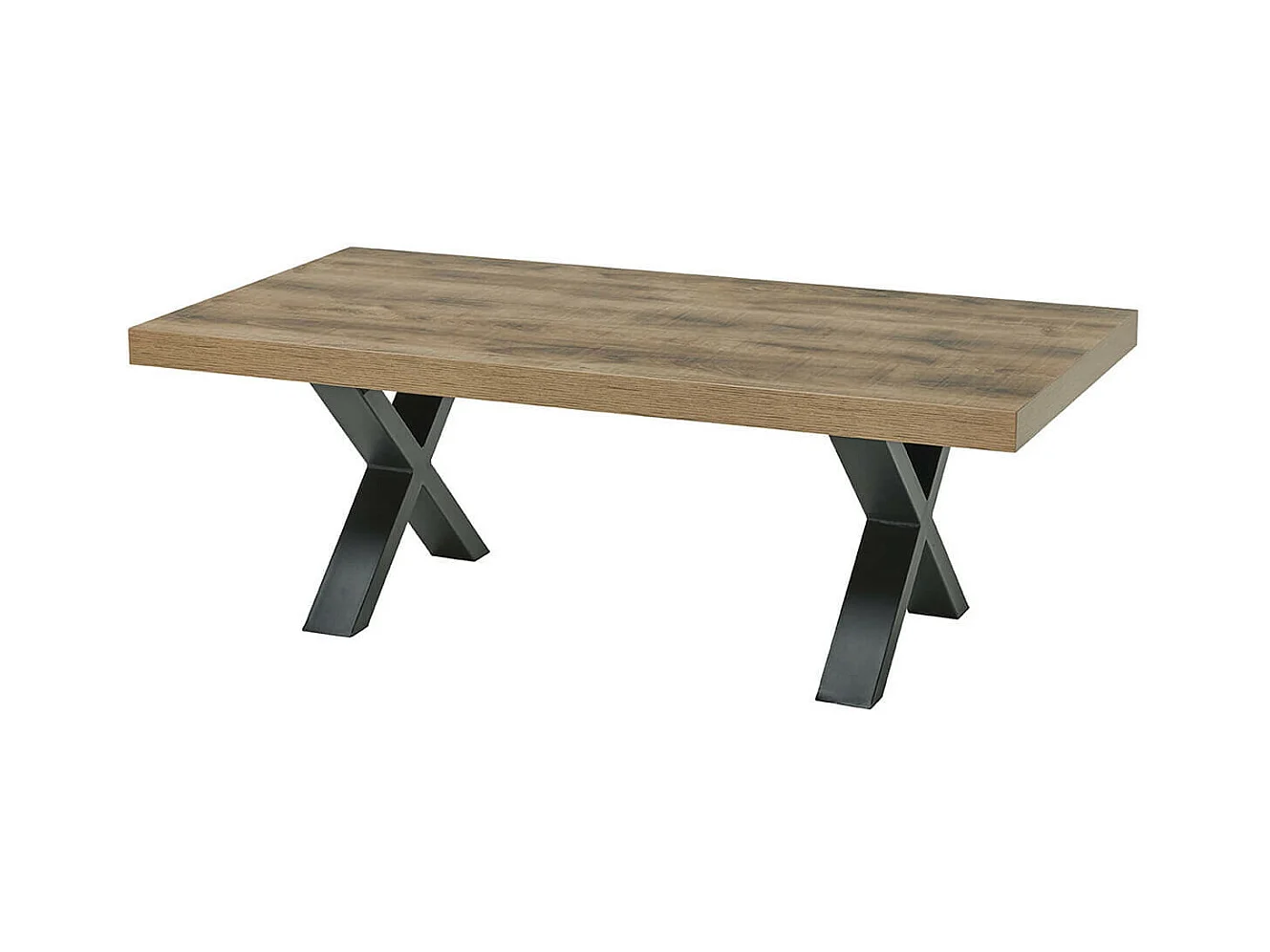 KORA - Table Basse Aspect Bois Piètement X Métal Poudré Noir
