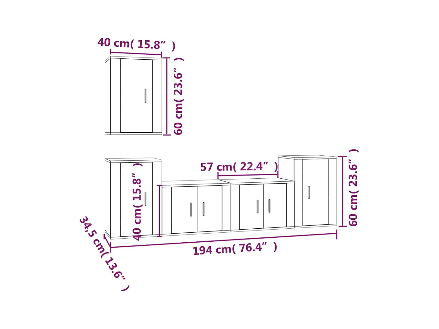 Korsholm Ensemble de meubles TV 5 pcs Sonoma gris Bois d'ingénierie