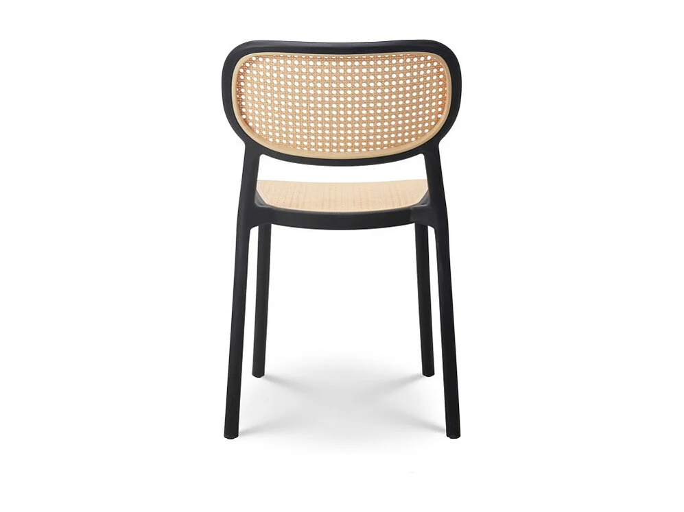 Chaise noire en résine, assise et dossier en Bois naturel teinté