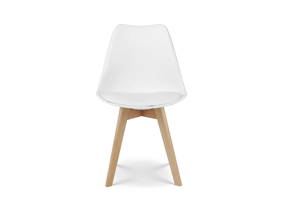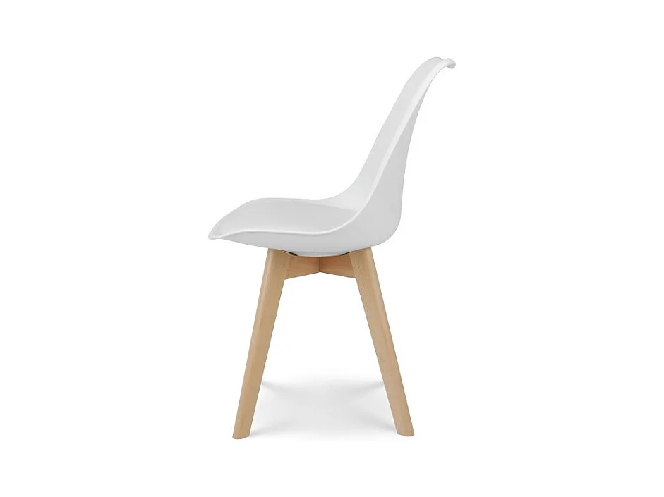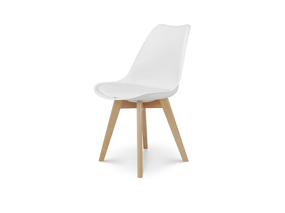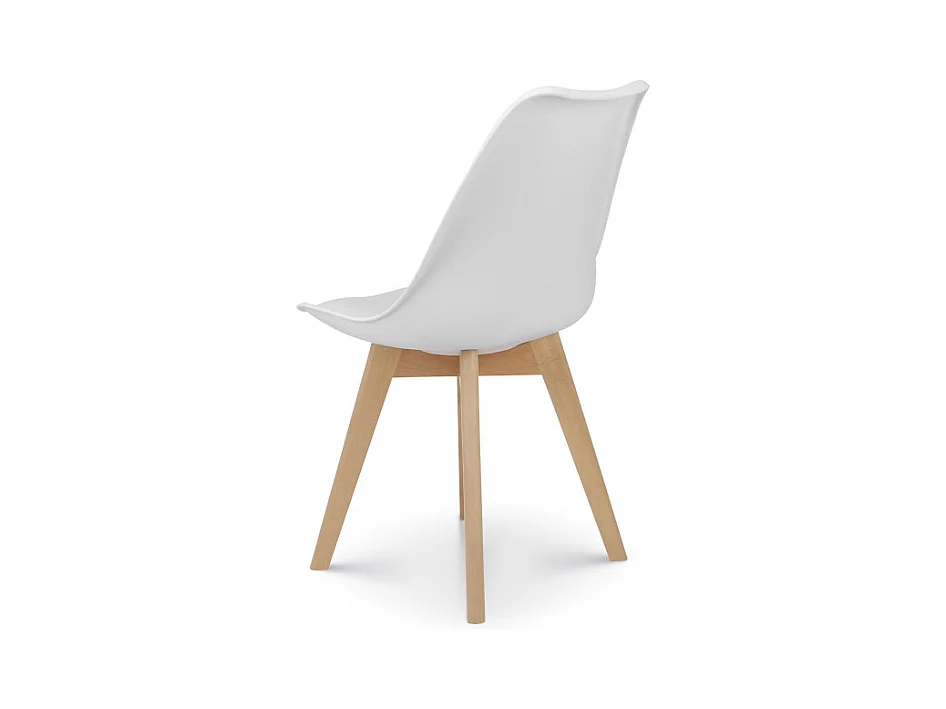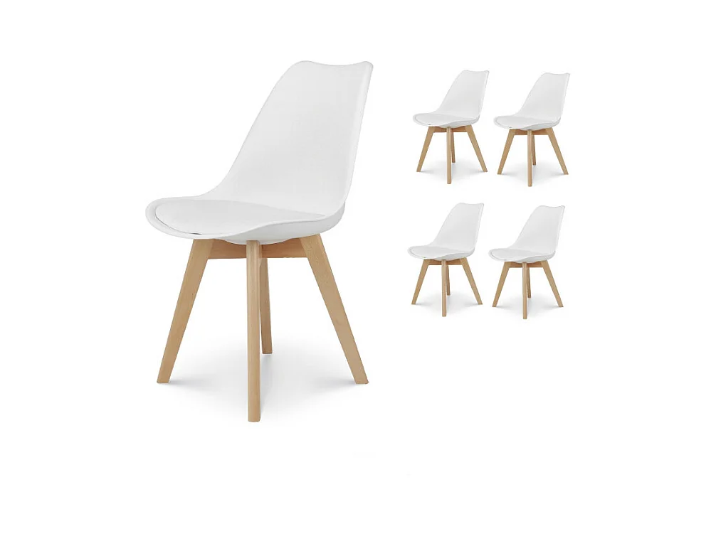 Lot de 4 chaises style scandinave VICTOIRE - Coque en résine blanche rembourrée et pieds en bois naturel