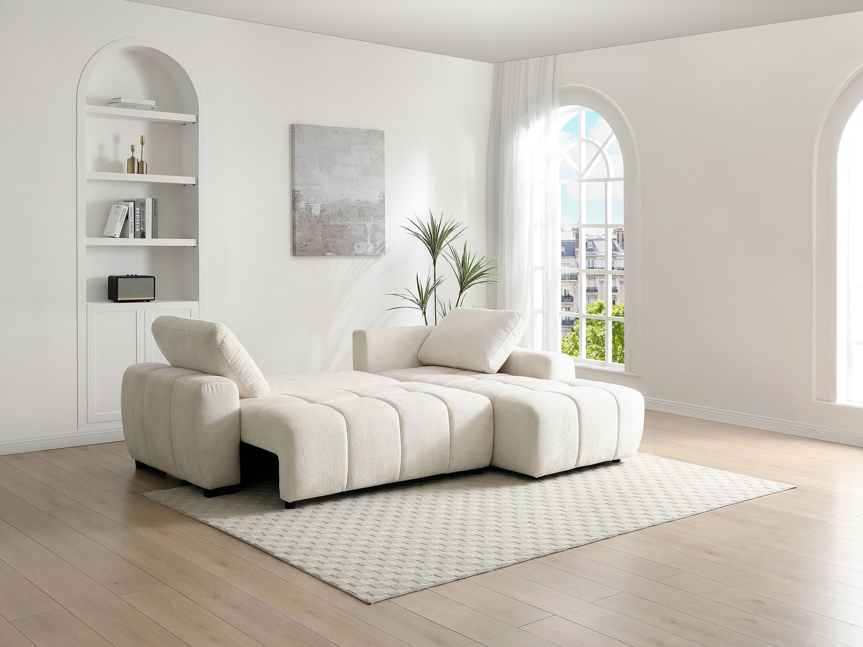 Canapé d'angle droit convertible en tissu chenille beige KOUMALO