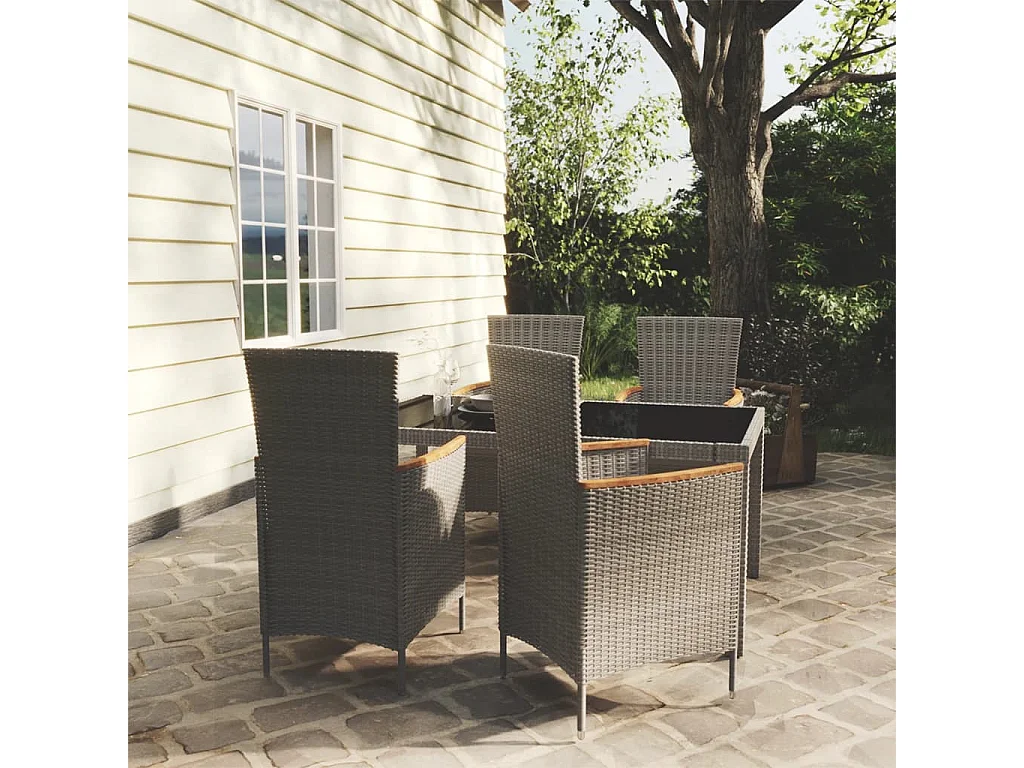 Kristof Ensemble à manger d'extérieur 5pcs coussins résine tressée gris