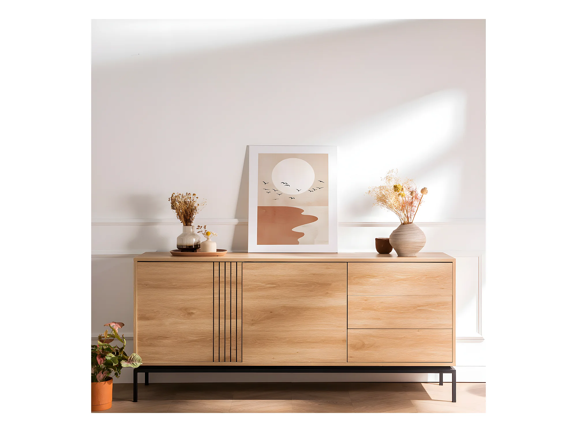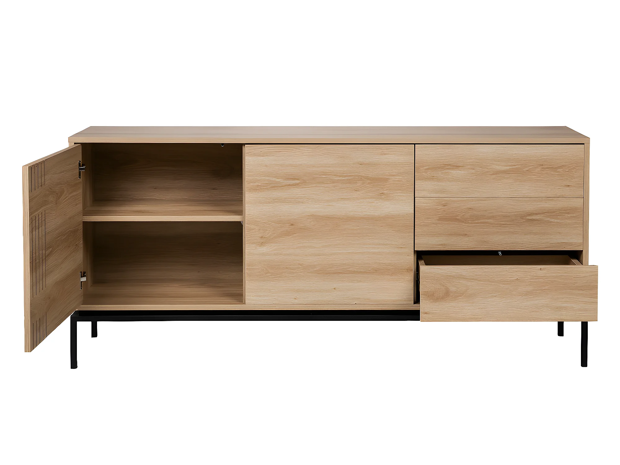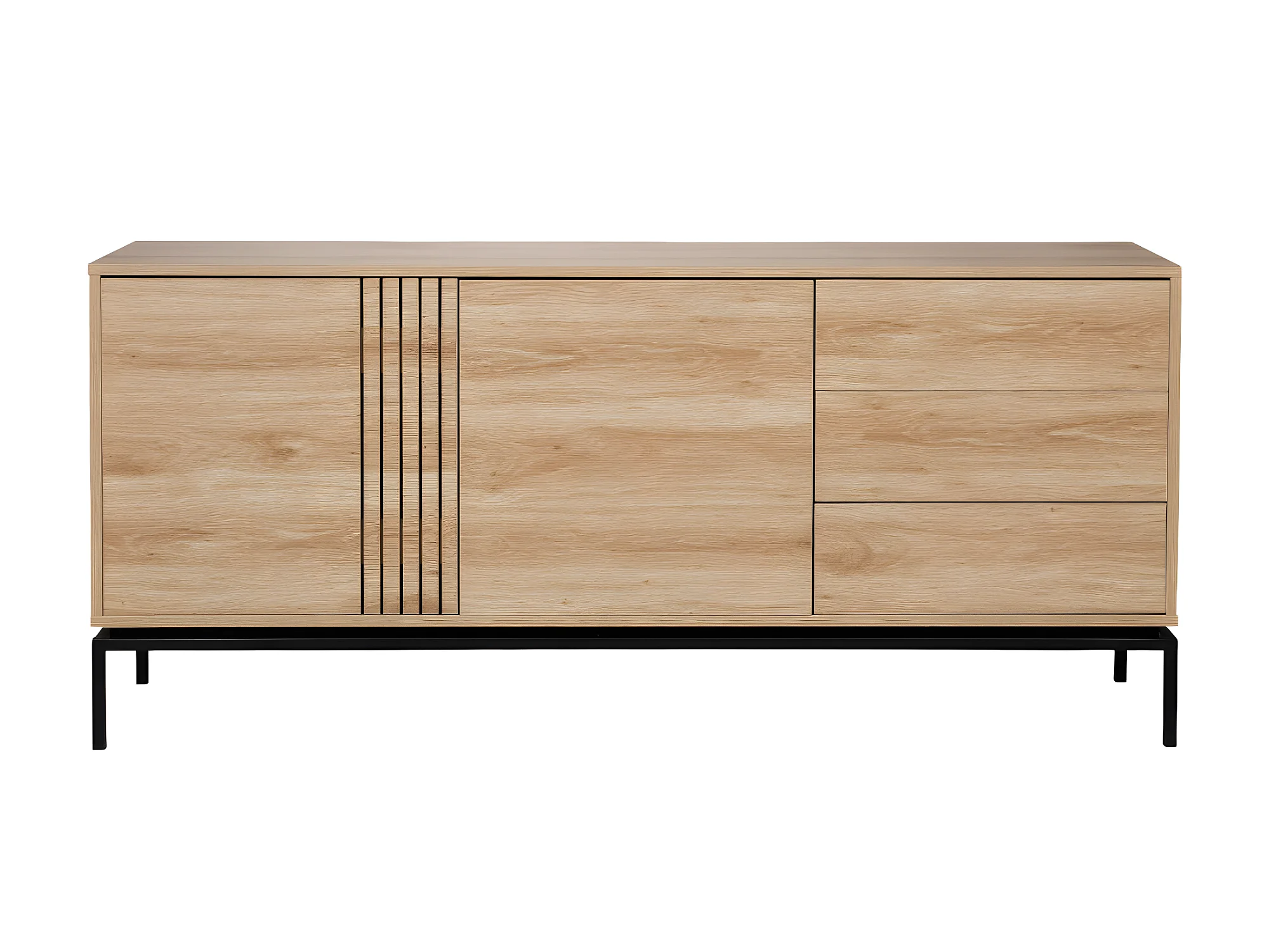 Krokom - Buffet 2 portes 3 tiroirs en bois et métal L180cm : Couleur - Bois clair