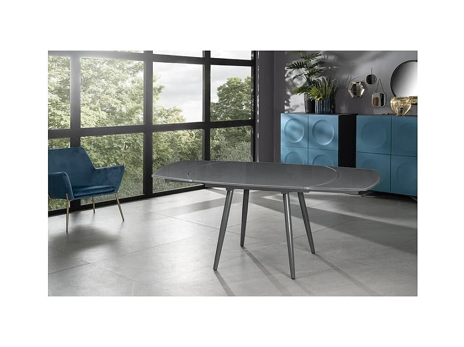 Table extensible Kyoto Four en verre trempé gris jusqu'à 180 cm