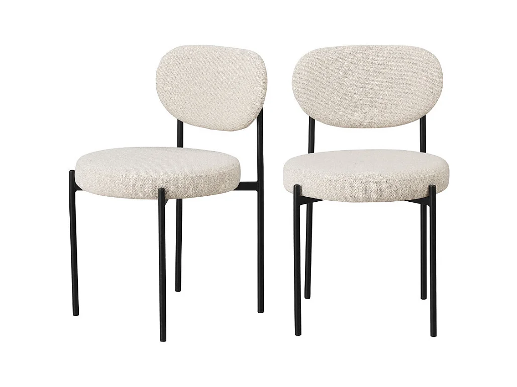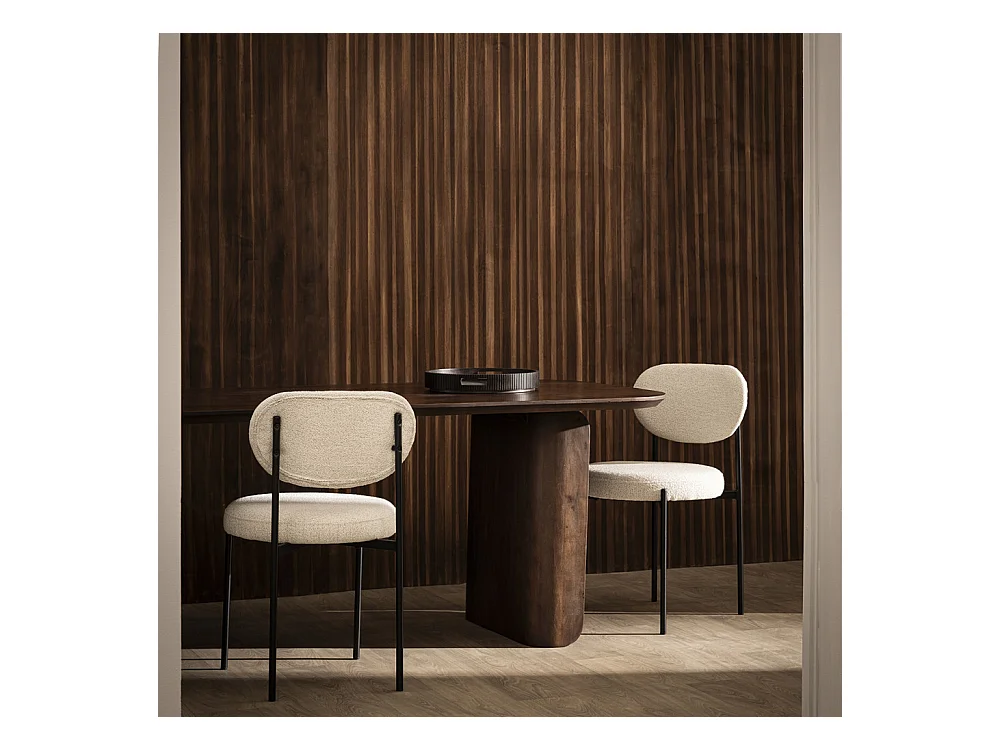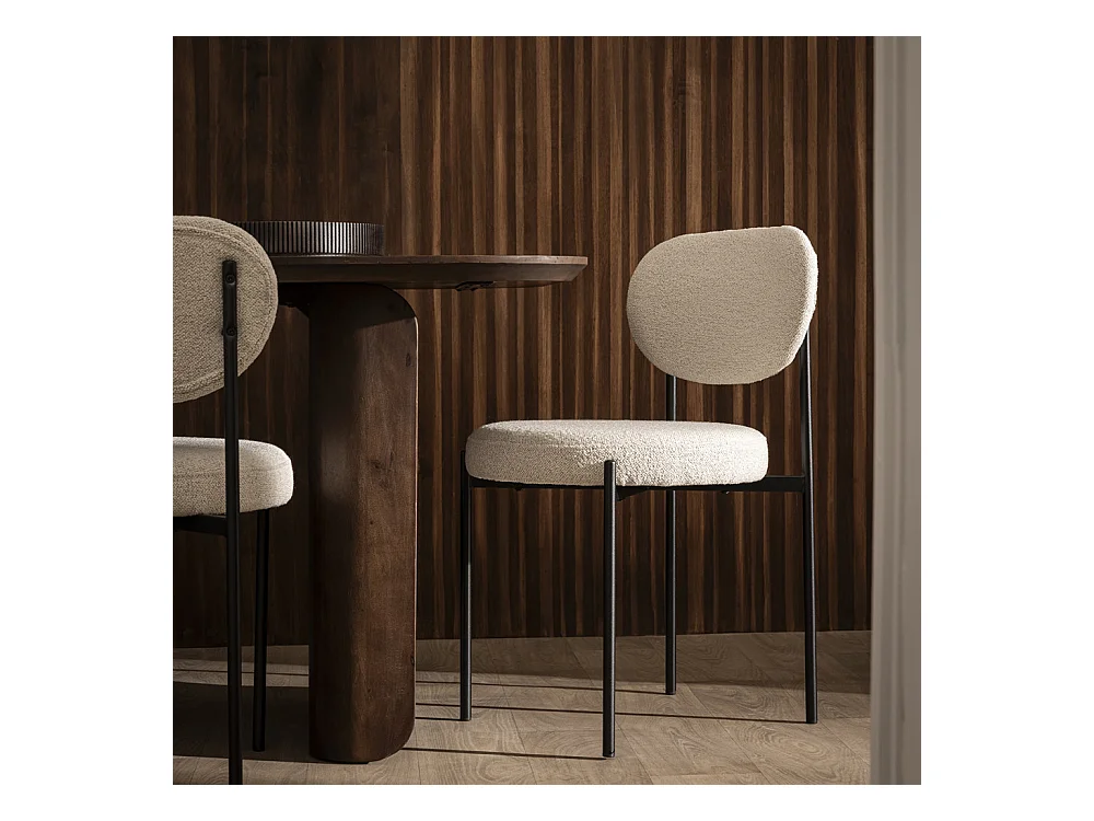 Kyoto - Lot de 2 chaises en tissu bouclette et métal - Écru
