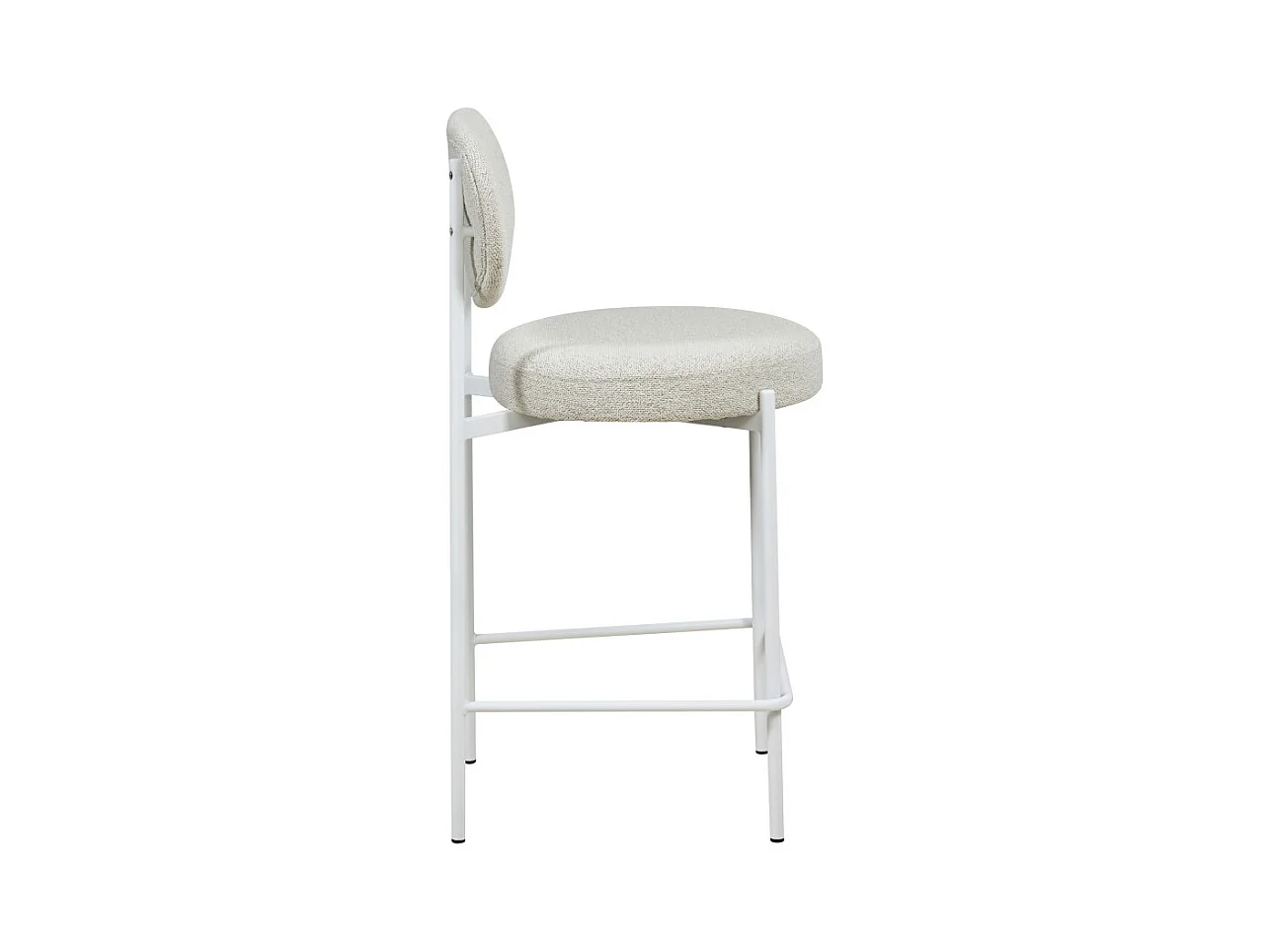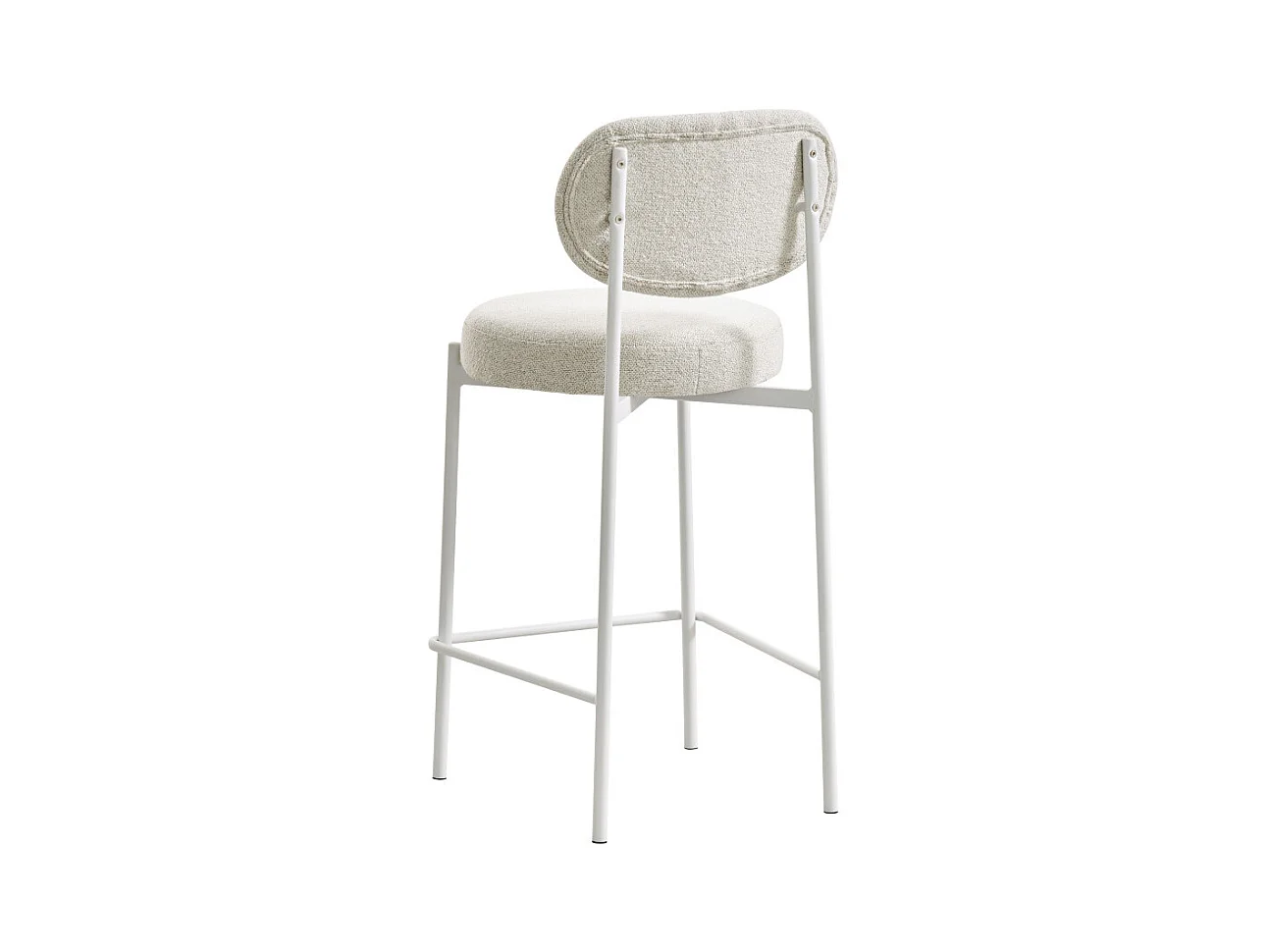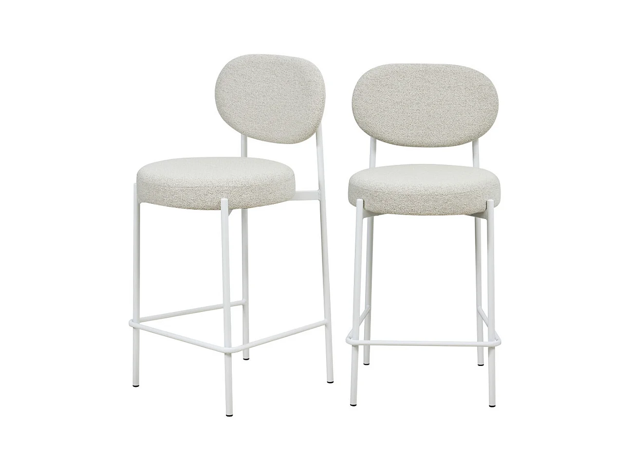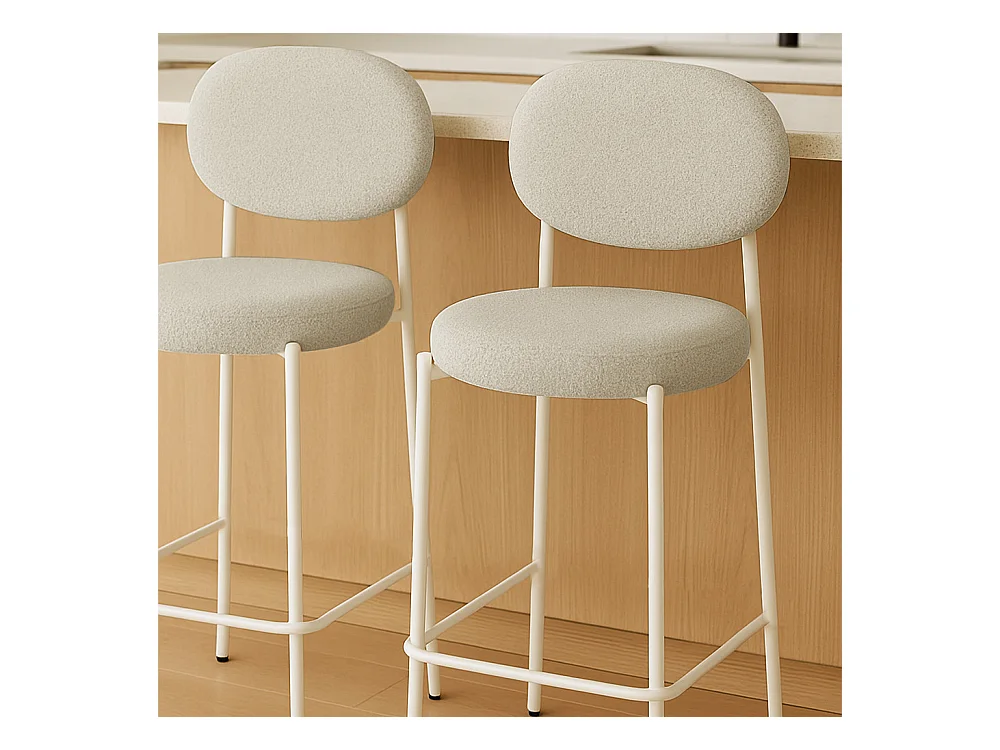 Kyoto - Lot de 2 tabourets de bar en tissu bouclette et pieds blancs - Écru