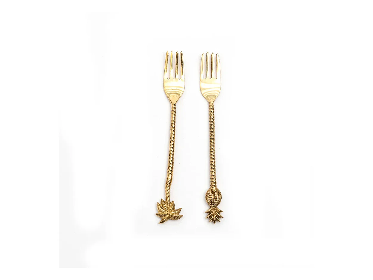 Set de 4 fourchettes à dessert dorées en acier inoxydable style feuilles